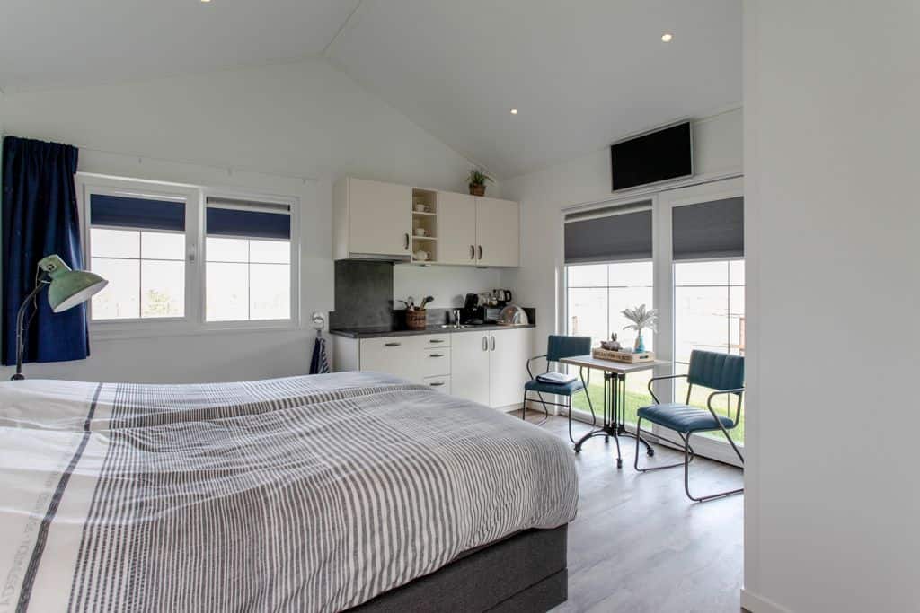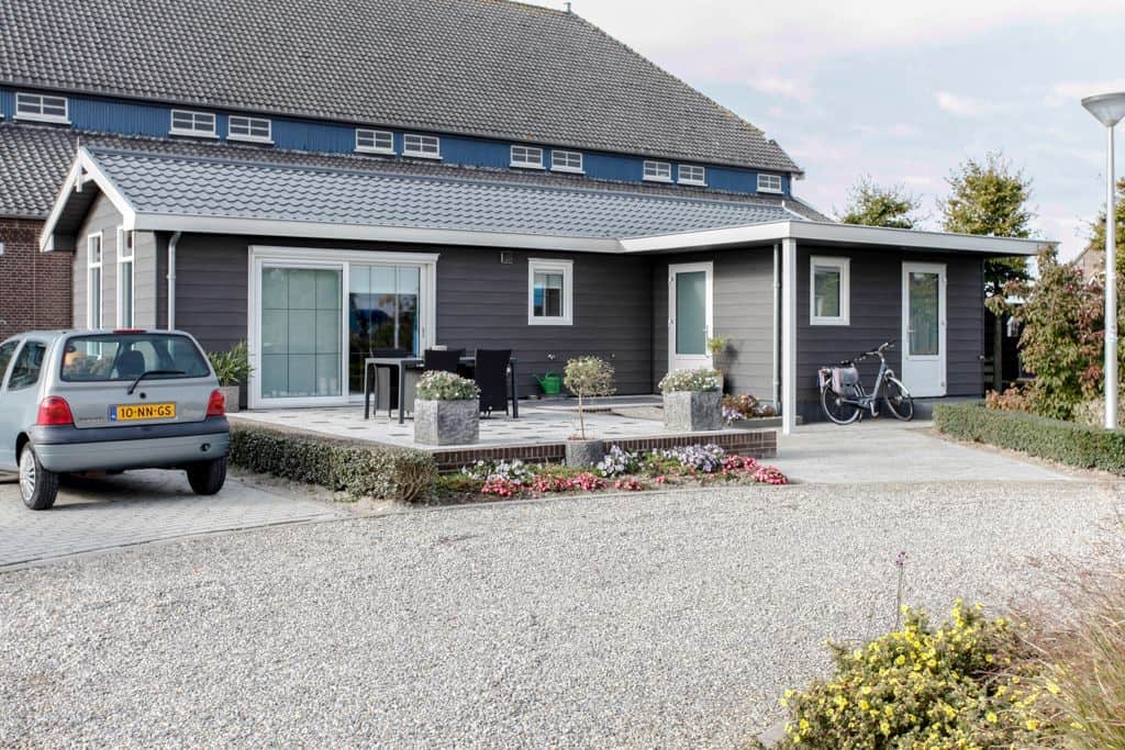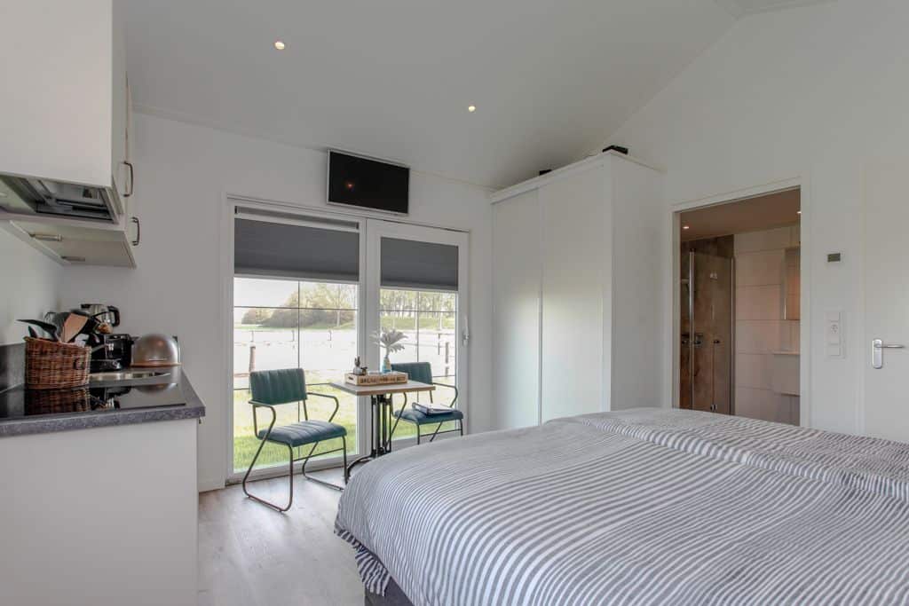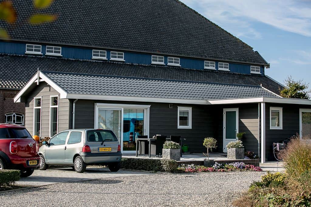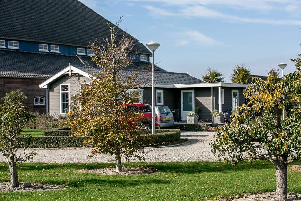 Klant aan het woord: ‘We zijn nu een tijdje bezig en kregen steeds vaker de vraag of het ook mogelijk was om te blijven slapen op ons zorgerf. Dit was voorheen niet mogelijk maar sinds kort dus wel! Dankzij TOP Totaal hebben wij nu twee prachtige aangepaste zorgwoningen op het terrein staan waar onze gasten met eventueel de mantelzorgers of partners kunnen overnachten. De eerste woning staat statig naast onze boerderij en wordt bewoond door de vader van Reinier. Na het overlijden van zijn vrouw is hij definitief komen wonen op het erf en helpt volop mee met de klussen die dagelijks gedaan moeten worden op het bedrijf. De andere woning is gesplitst in twee identieke appartementen die beide bestaan uit een eigen entree, keuken, aangepaste badkamer en woon- en slaapkamer. Beide appartementen beschikken over een tweepersoons hoog/laag boxspring bed die geheel aangepast kan worden aan de ligbehoeften van de logé’.