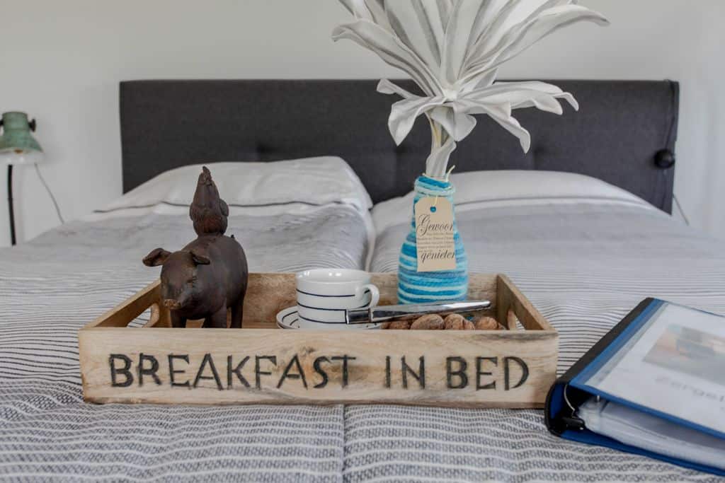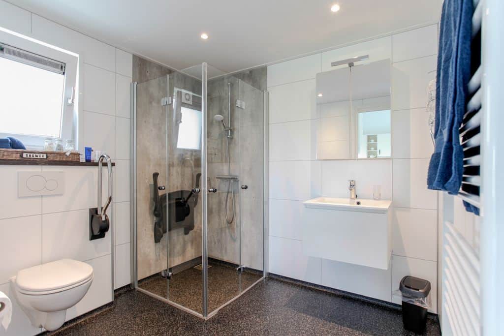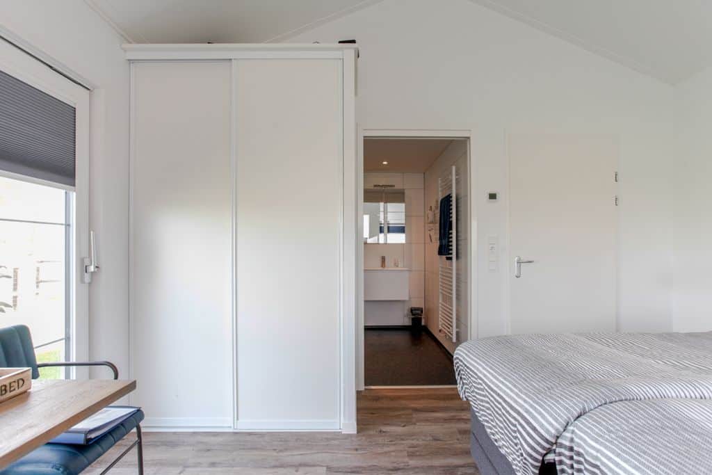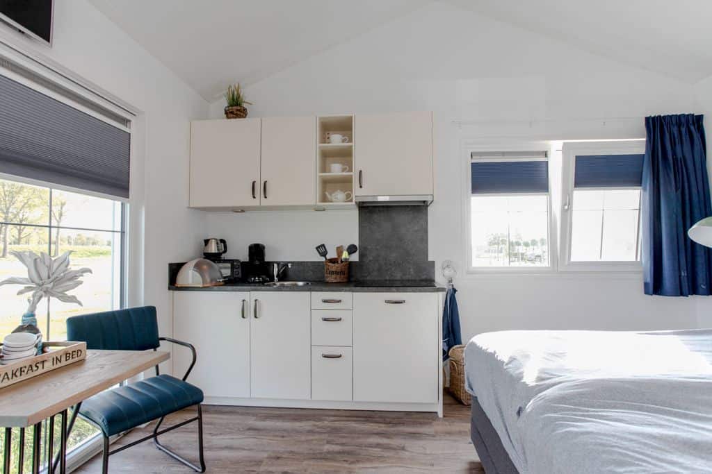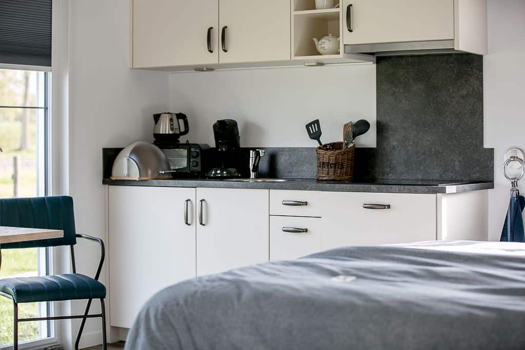 Klant aan het woord: ‘We zijn nu een tijdje bezig en kregen steeds vaker de vraag of het ook mogelijk was om te blijven slapen op ons zorgerf. Dit was voorheen niet mogelijk maar sinds kort dus wel! Dankzij TOP Totaal hebben wij nu twee prachtige aangepaste zorgwoningen op het terrein staan waar onze gasten met eventueel de mantelzorgers of partners kunnen overnachten. De eerste woning staat statig naast onze boerderij en wordt bewoond door de vader van Reinier. Na het overlijden van zijn vrouw is hij definitief komen wonen op het erf en helpt volop mee met de klussen die dagelijks gedaan moeten worden op het bedrijf. De andere woning is gesplitst in twee identieke appartementen die beide bestaan uit een eigen entree, keuken, aangepaste badkamer en woon- en slaapkamer. Beide appartementen beschikken over een tweepersoons hoog/laag boxspring bed die geheel aangepast kan worden aan de ligbehoeften van de logé’.
