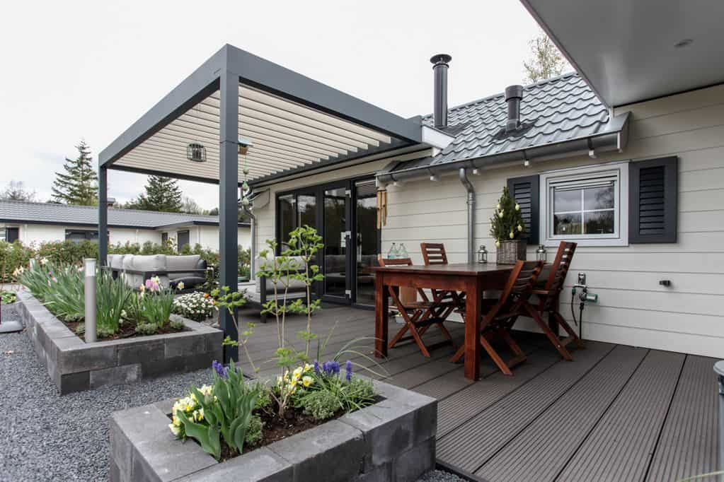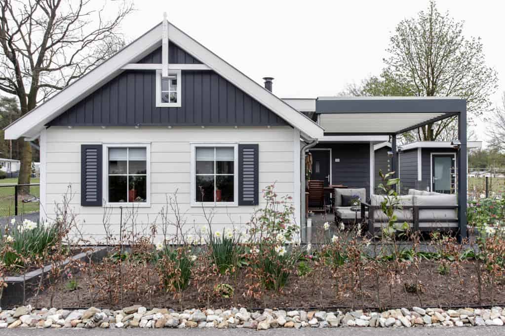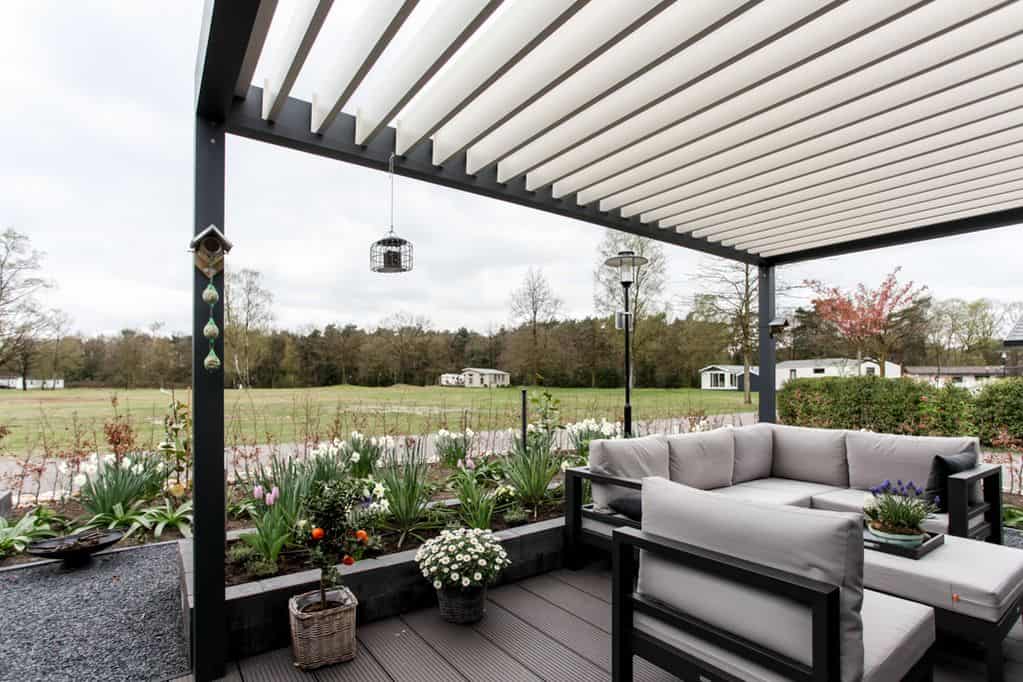 Een recreatiewoning geplaatst op Camper Village Arcen. Deze woning, van het type Colorado is voorzien van een lamellen luifel. De woning heeft 2 slaapkamers, een inpandige berging en een apart toilet. De woonkamer is uitgevoerd met een verhoogd plafond en een slaapzolder.
