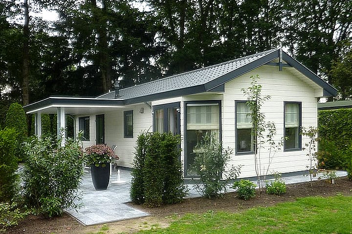 Het blijft ons verbazen, hoe verschillend onze TOP-chalets zijn na oplevering. En dat terwijl ze allemaal gebaseerd zijn op slechts een paar basismodellen. Omdat we het chalet helemaal aanpassen aan de woonwensen van de opdrachtgever, creëren we keer op keer een unieke woning. Zo is dit prachtige recreatiechalet voorzien van een mooie erker en een overkapping. De witte houtdelen geven het geheel een frisse, klassieke uitstraling.