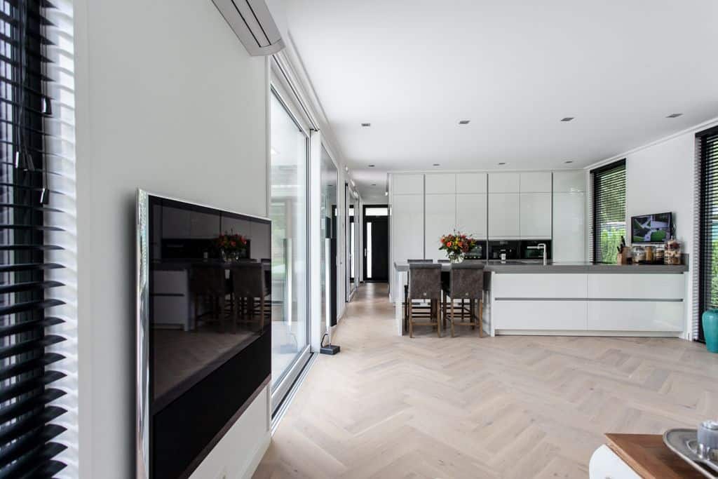 Welkom in deze zeer luxe bungalow in Loosdrecht. Het interieur ademt pure stijl. Neem bijvoorbeeld de binnendeuren, ontworpen door Piet Boon. Zwart van kleur en geschilderd in hoogglans en geproduceerd van echt hout. Ze maken deze vakantiewoning van het type TOP-Quadro op vakantiepark De Wetering extra sfeervol.