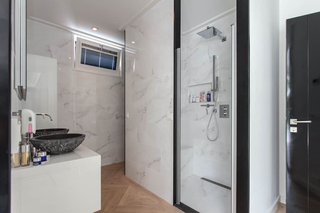 “We hebben gekozen voor een luxe afwerking en inrichting, met o.a. exclusieve kranen en luxe accessoires. De opslagruimte komt uit in hal waar bewust is gekozen voor een schuifdeur, om geen extra ruimte in beslag te nemen bij het openen en sluiten van de deur.