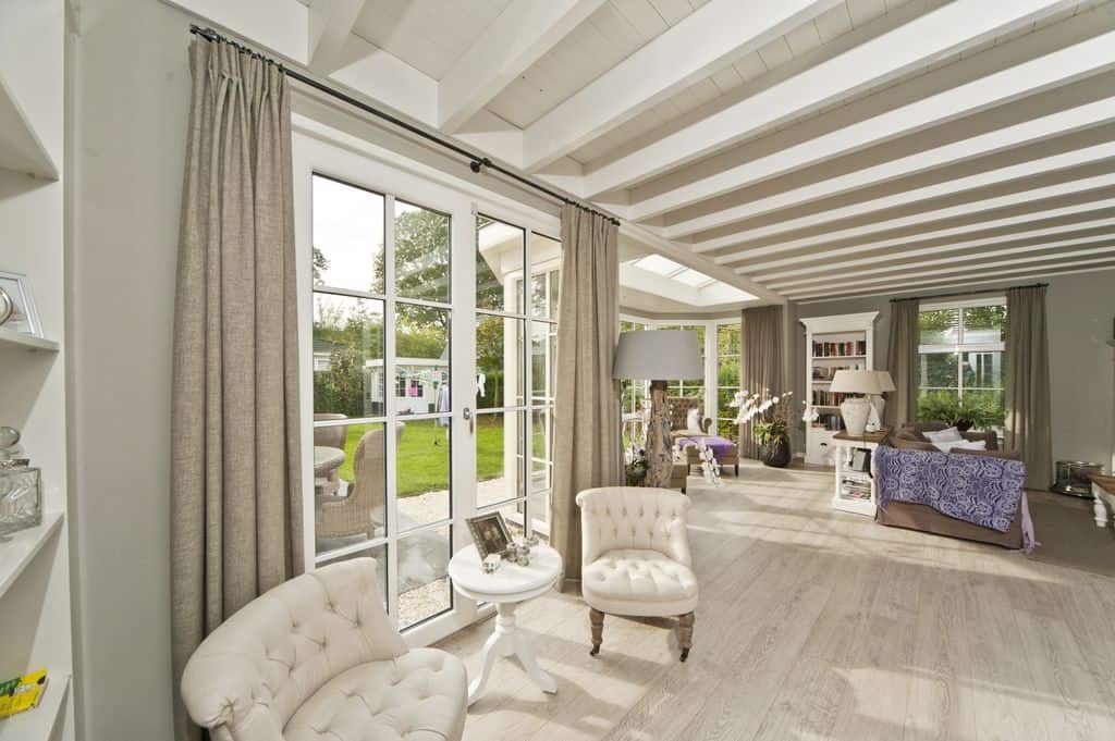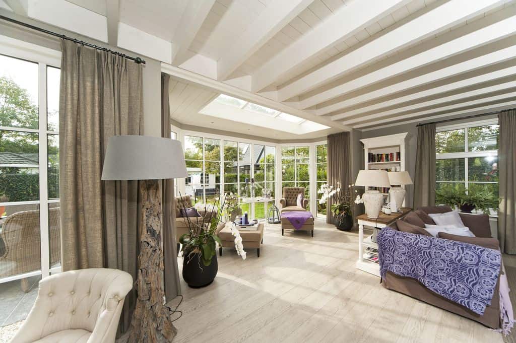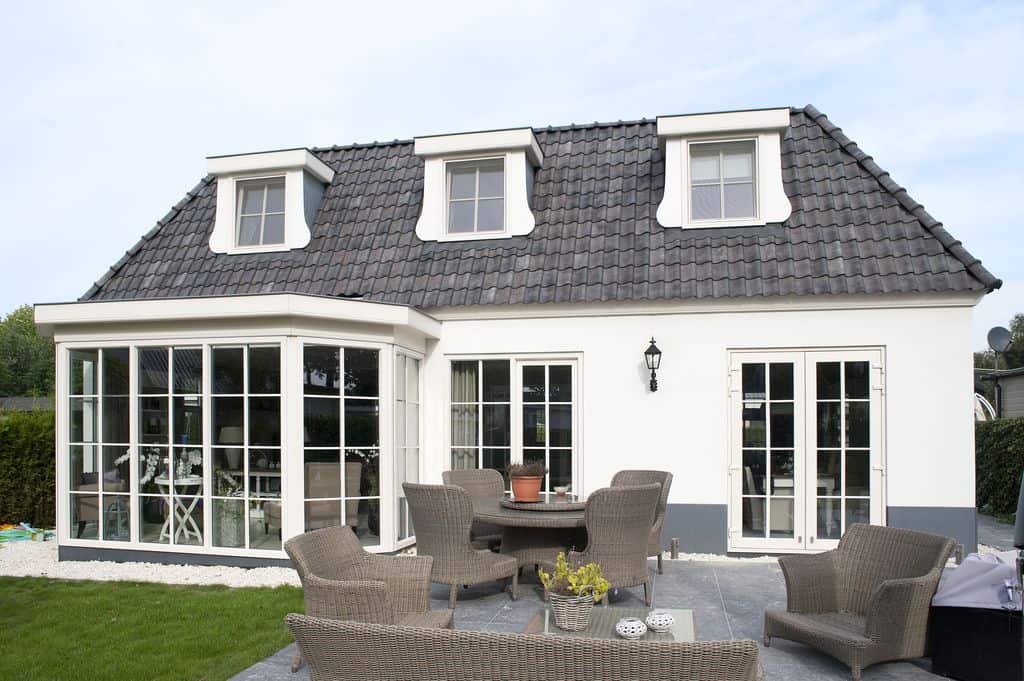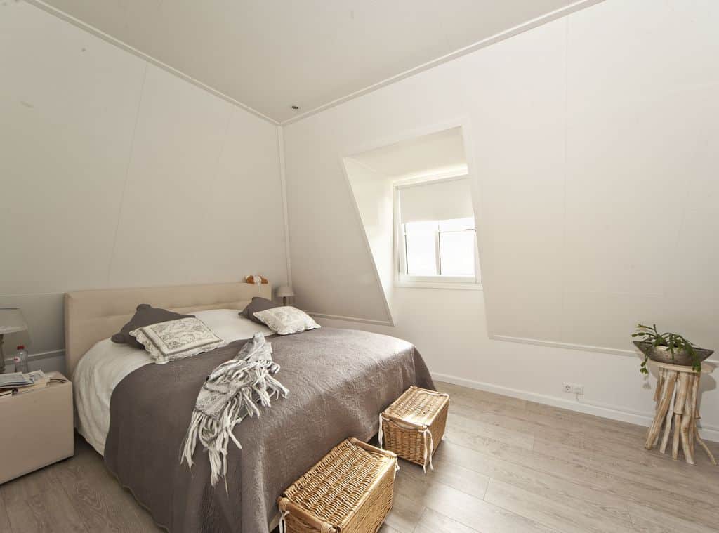 Met chalettype Manitoba kunt u alle kanten op. Deze recreatiewoning op vakantiepark Duinlust is bijvoorbeeld uitgebreid met prachtige dakkapellen en een glazen erker. De witgestucte buitenwanden geven het geheel een bijzonder charmante uitstraling. Het chalet is 8 meter breed en 12 meter lang. De etage zorgt voor extra slaapruimte zodat de begane grond helemaal vrij is voor de keuken en de eet-/woonkamer. Wat een luxe! Ook de fraaie trap in de hal is een echte eyecatcher.