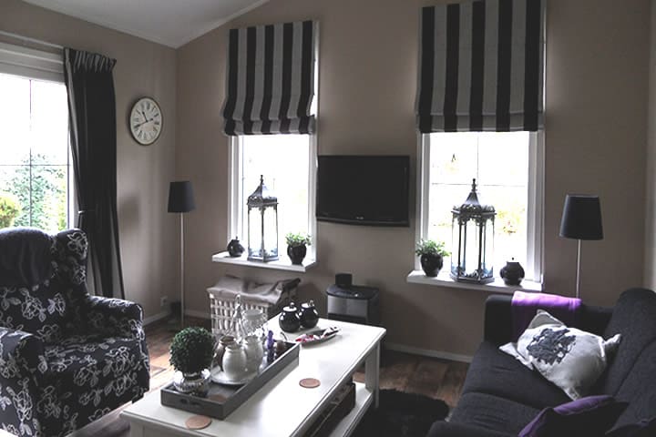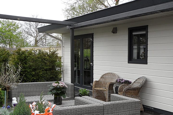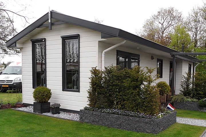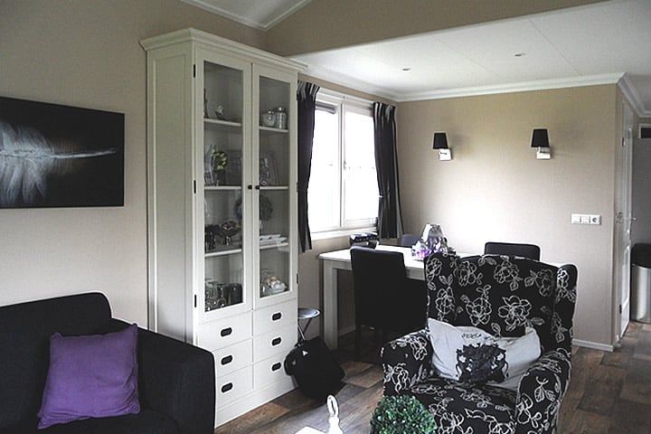 Chalet Ontario biedt veel ruimte en is standaard voorzien van een complete badkamer en volwaardige keuken met inbouwapparatuur. We stellen het chalet helemaal samen in overleg met de opdrachtgever. Uw eigen chalet wordt dus altijd uniek en helemaal naar uw zin. Houdt u bijvoorbeeld van een romantische, landelijke uitstraling? Dan zullen de foto’s van dit chalet u zeker aanspreken. De eigenaar heeft gekozen voor een buitenwand in het wit met kozijnen in een mooie contrasterende donkergroene kleur. Ook binnen is gekozen voor een knusse, landelijke stijl.