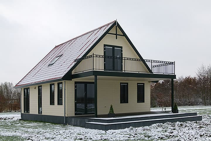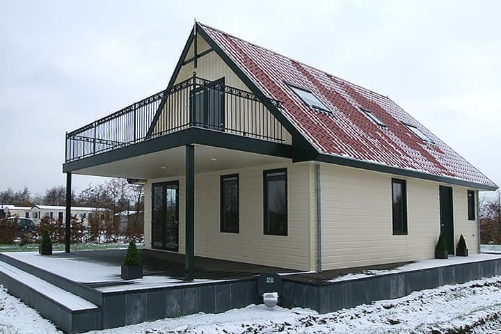 Chalet Manitoba is het grootste chalettype van TOP Totaal. Voor deze opdrachtgever hebben we de etage van het chalet ook nog eens voorzien van een flink balkon. Het resultaat: een vorstelijke uitstraling. Ook het interieur van het chalet mag er zijn: ruime badkamer met alles erop en eraan, keuken met inbouwapparatuur en voldoende slaapplaatsen voor de hele familie.