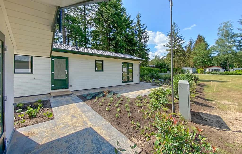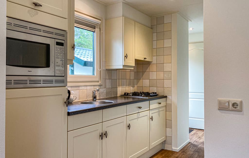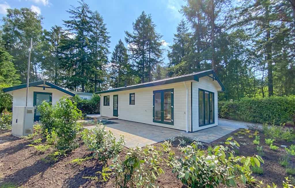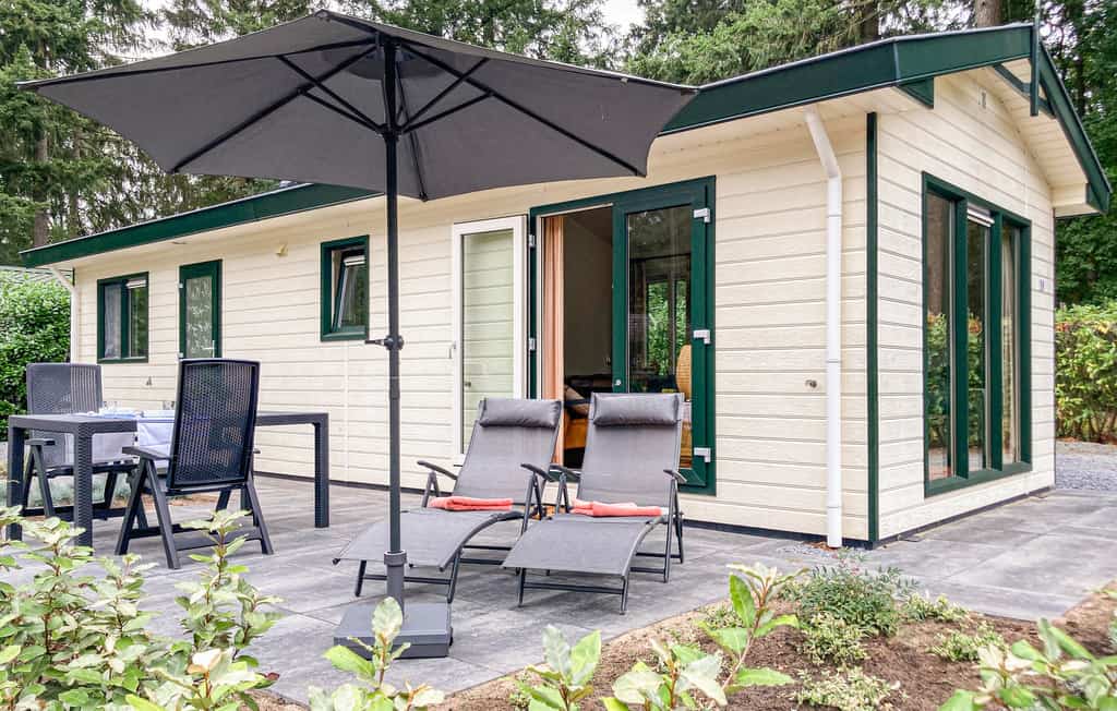 De recreatiewoning is 40m2 groot, heeft 2 slaapkamers en een luxe keuken.