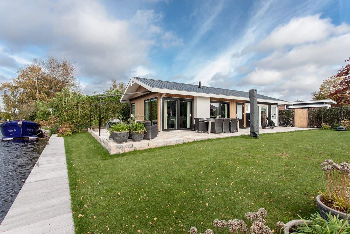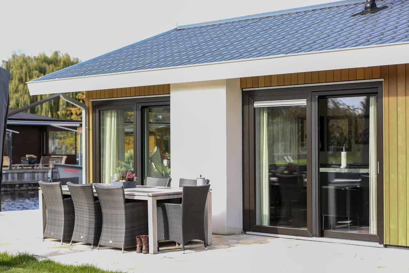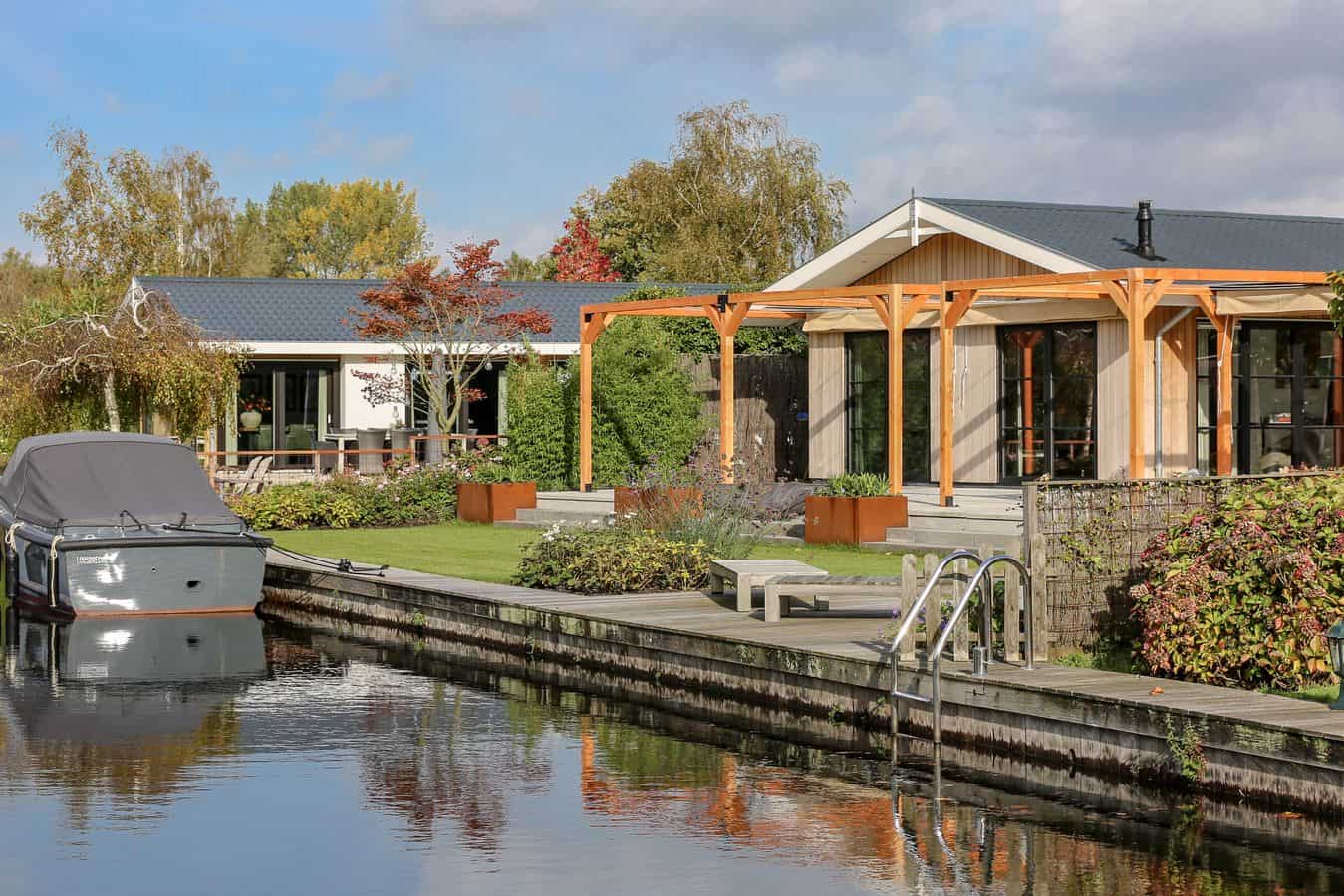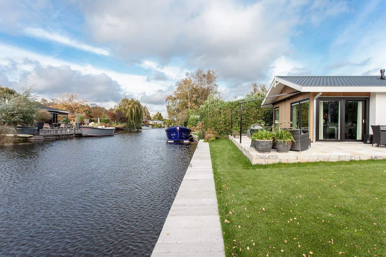 Deze luxe watervilla staat op Caravanpark van de Wetering in Loosdrecht.