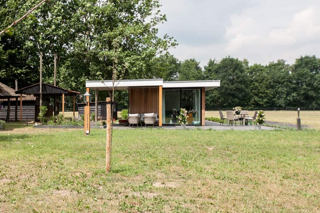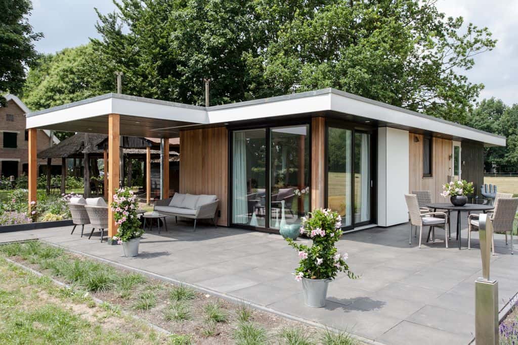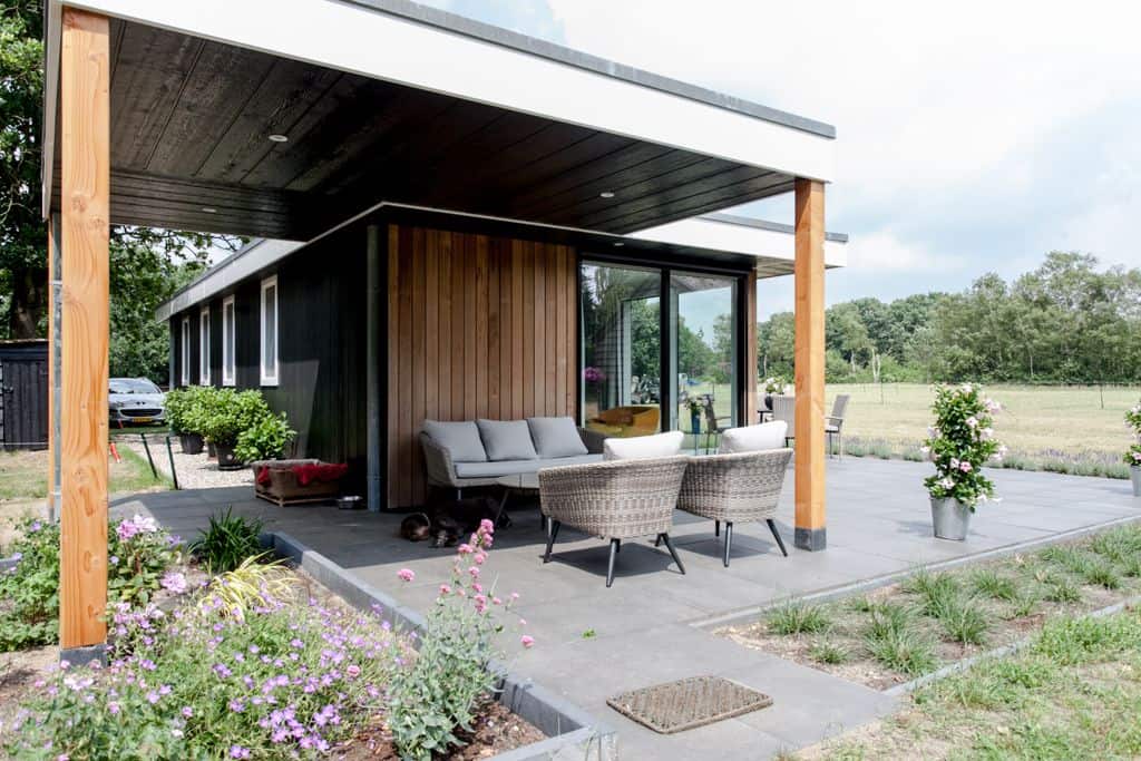 In Kootwijk (Gelderland) hebben we deze mantelzorgwoning in moderne stijl geplaatst, het betreft het model Quadro,