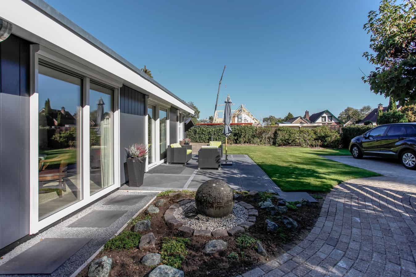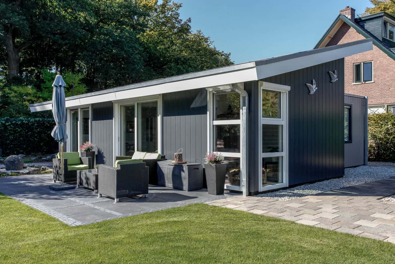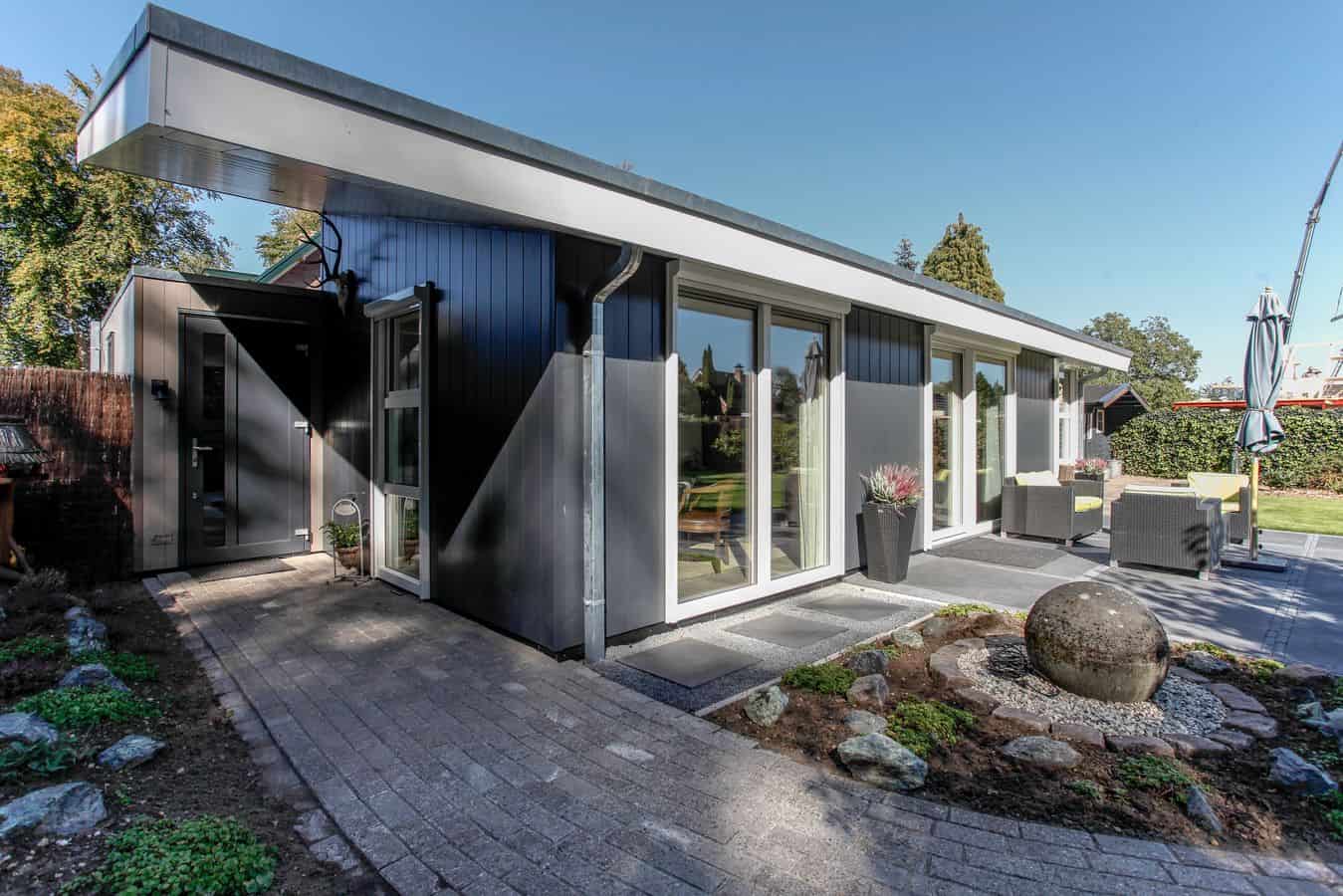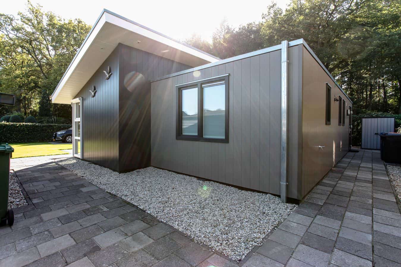 Deze mantelzorgwoning is uitgevoerd met een lessenaarsdak die volledig is voorzien van zonnepanelen.