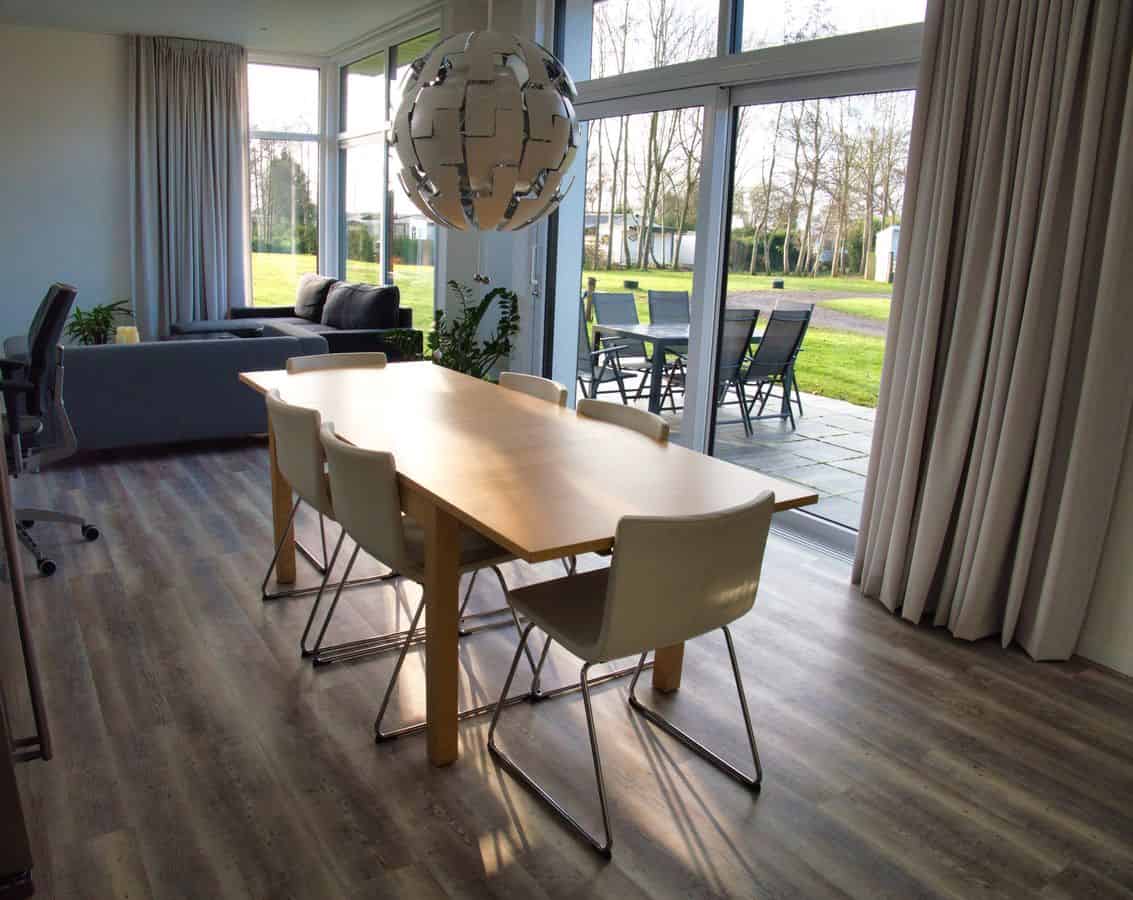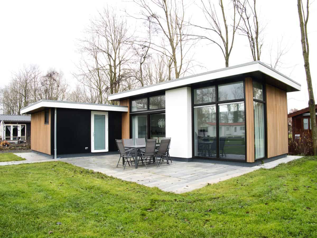 Deze recreatiewoning staat op een huurkavel op Camping Pool aan het Leekstermeer in Matsloot.