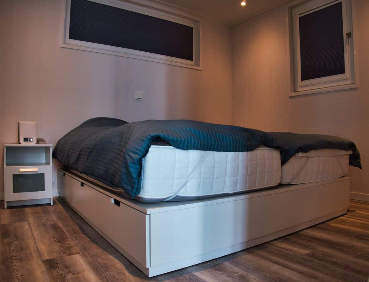 Deze energiezuinige woning is uitgevoerd met vloerverwarming. De ruime woonkamer met een verhoogd plafond en grote raampartijen zorgen voor een zeer aangename leefruimte. De open hoekkeuken is voorzien van alle luxe, alsook de badkamer met een riante douchenis. Een apart toilet, hangend uitgevoerd. 2 slaapkamers, waarvan 1 beschikt over een grote inbouwkast.