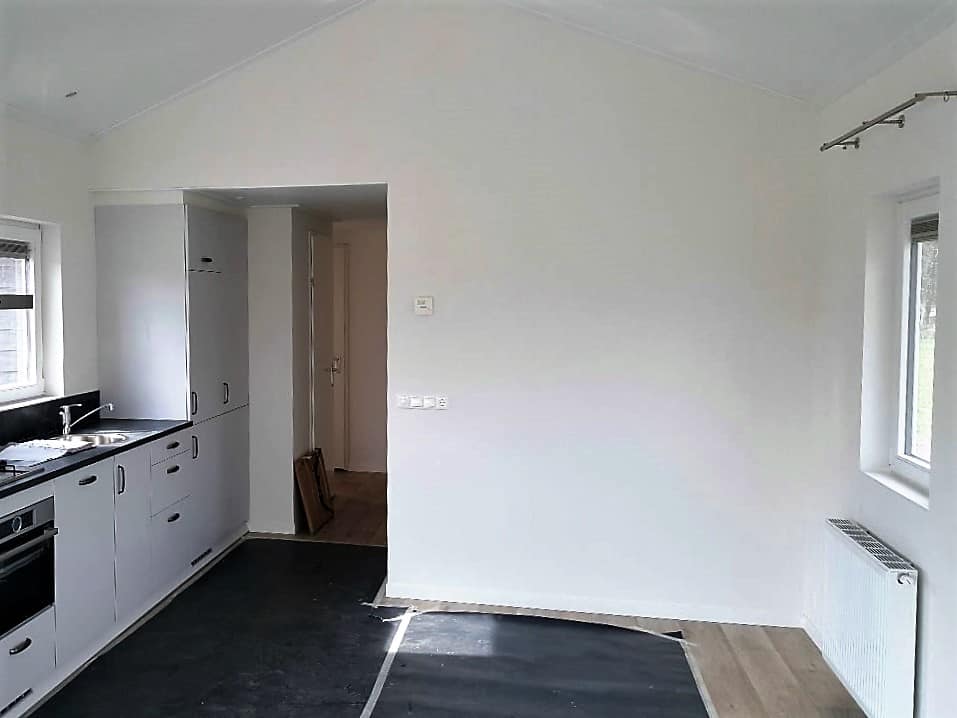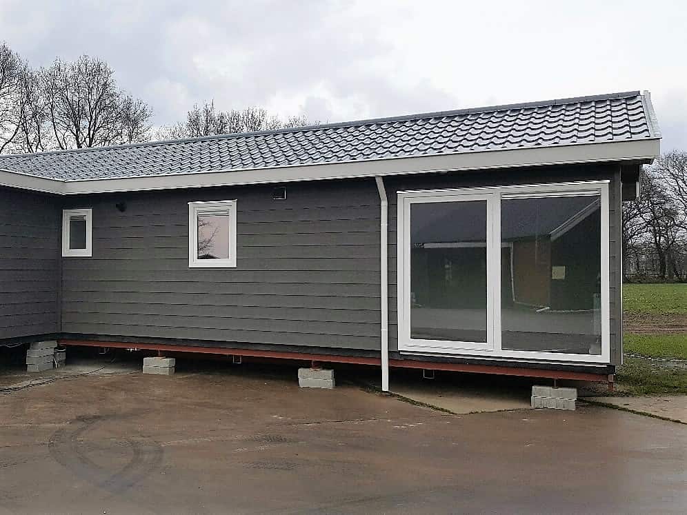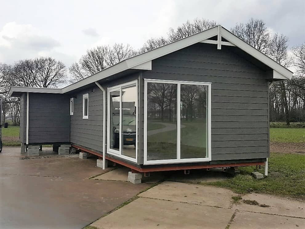 Dit chalet, model Ontario, is uitgevoerd in een moderne grijswitte kleurstelling. De woning is voorzien van 2 slaapkamers, een apart toilet, een bergzolder, vide (hoog plafond) t.p.v. de woonkamer en een aanbouw speciaal voor een extra ruime entree.