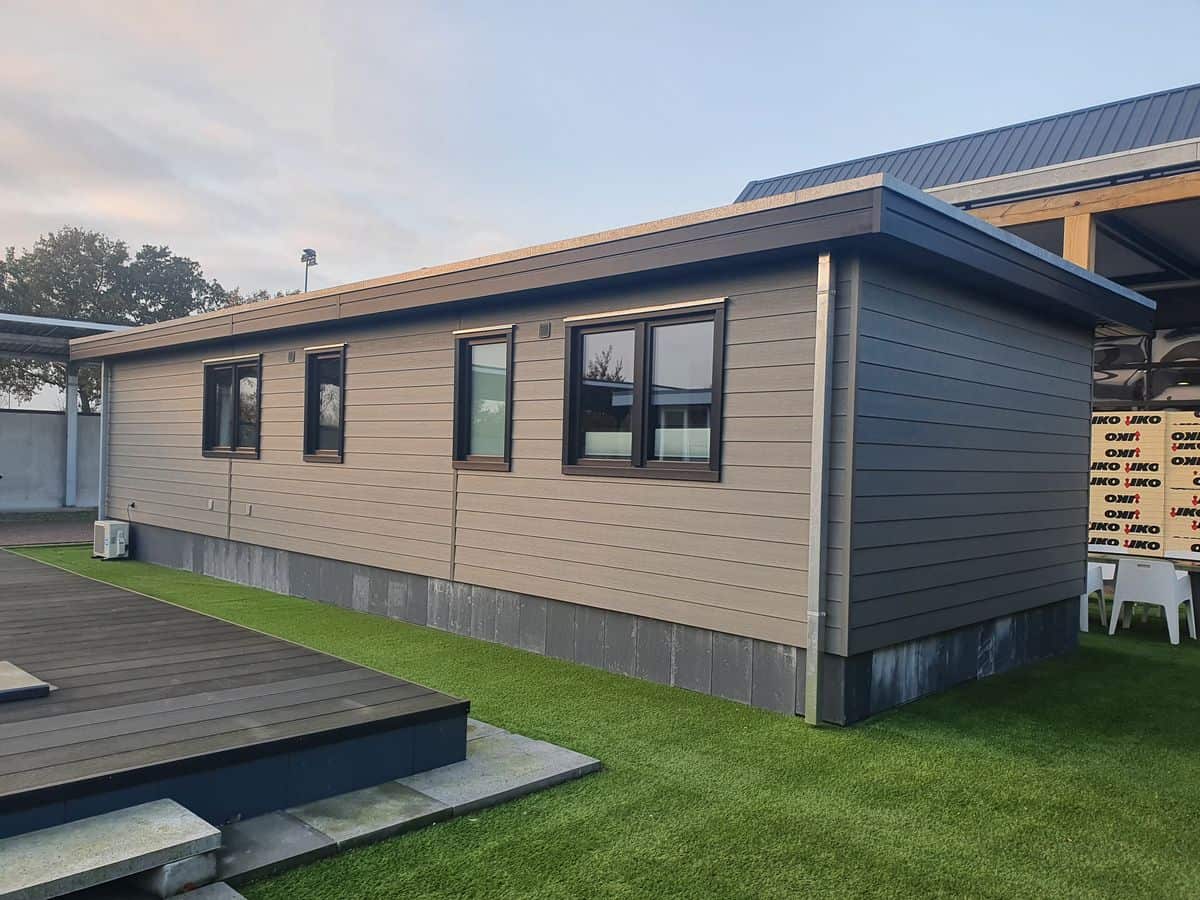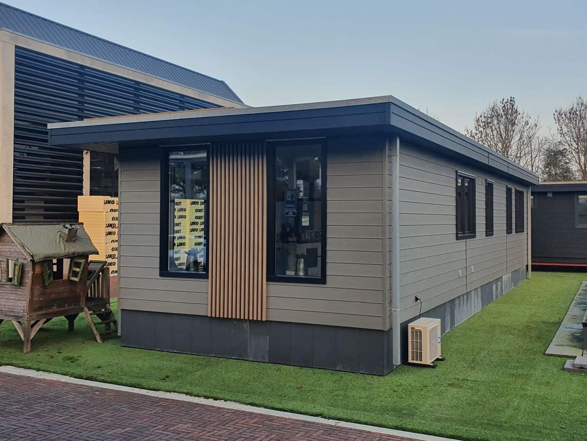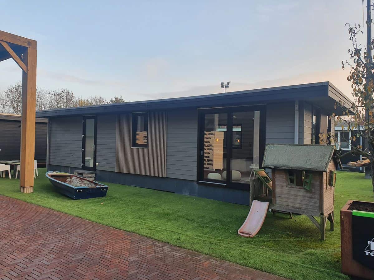 Deze strakke, moderne modelwoning van het type Quadro, staat sleutelklaar op ons showterrein in Kootwijkerbroek.