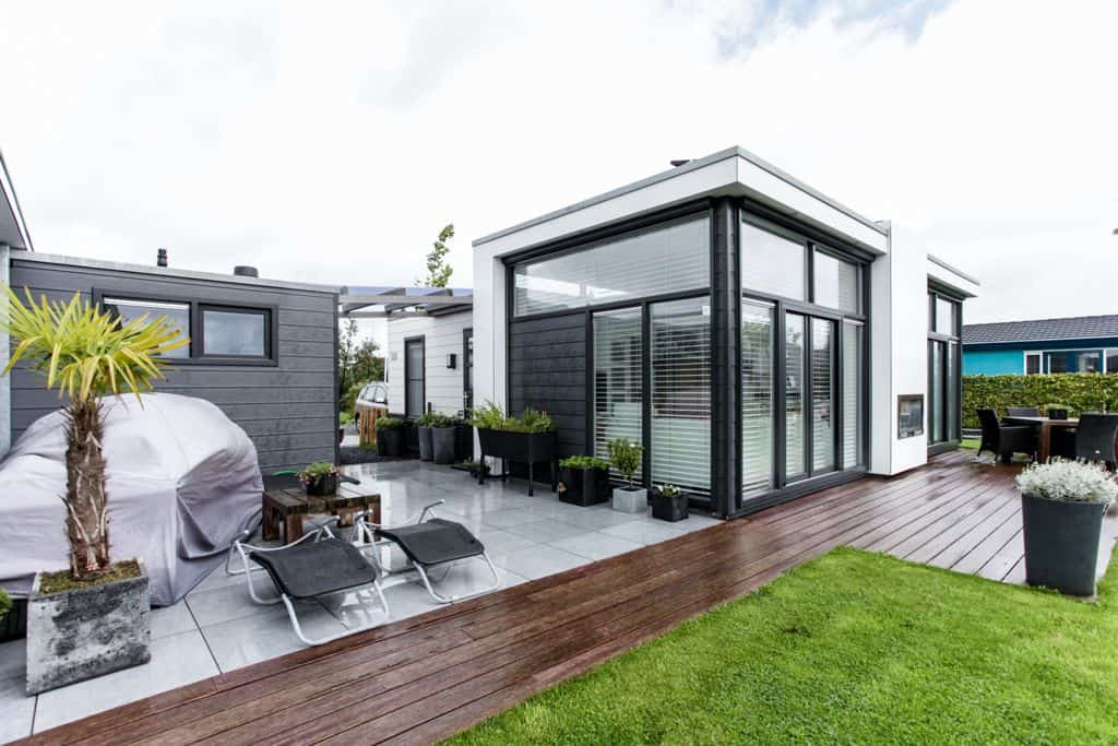 Deze recreatiewoning heeft een woonoppervlakte van maar liefst 70 vierkante meter. Het chalet type Quadro heeft strakke lijnen en is ook qua interieur helemaal aangepast op de moderne woonstijl van de opdrachtgever. We hebben daarbij gebruik gemaakt van lichte kleuren en natuurlijke materialen. De doorkijkhaard is een leuk en opvallend detail! Uiteraard heeft de woning verder alle voorzieningen om zeer comfortabel te kunnen leven.