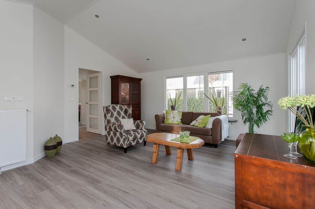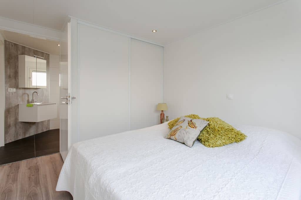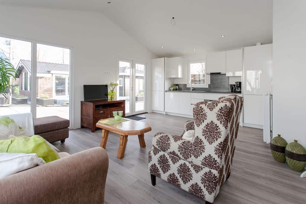 Recreatiechalet (60m² groot) met 2 ruime slaapkamers, een apart toilet en centrale verwarming. De badkamer is zowel vanuit de centrale hal als vanuit de ouderslaapkamer toegankelijk. Het verhoogde plafond (vide) t.p.v. de woonkamer en keuken zorgt voor nog meer ruimtebeleving.