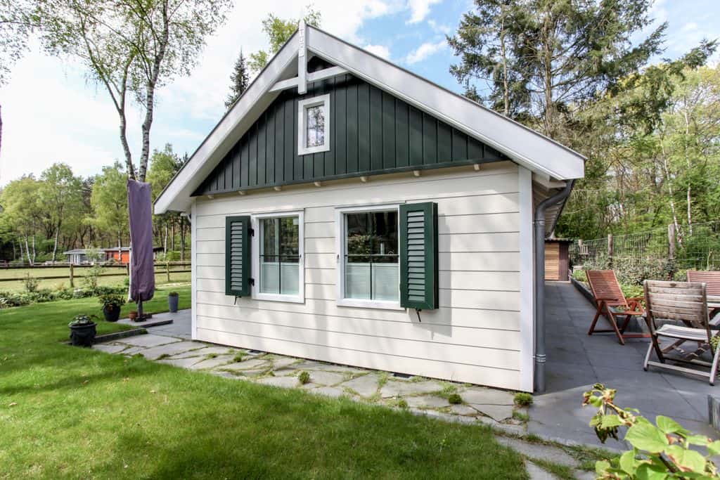 Dit type woning heeft een puntdak en is voorzien van hoge openslaande deuren met veel glas waardoor er extra licht binnenkomt. En heeft u die luiken gezien? Echte sfeermakers en meteen heel praktisch. Een heerlijke vakantiewoning met veel ruimte in en om het huis.