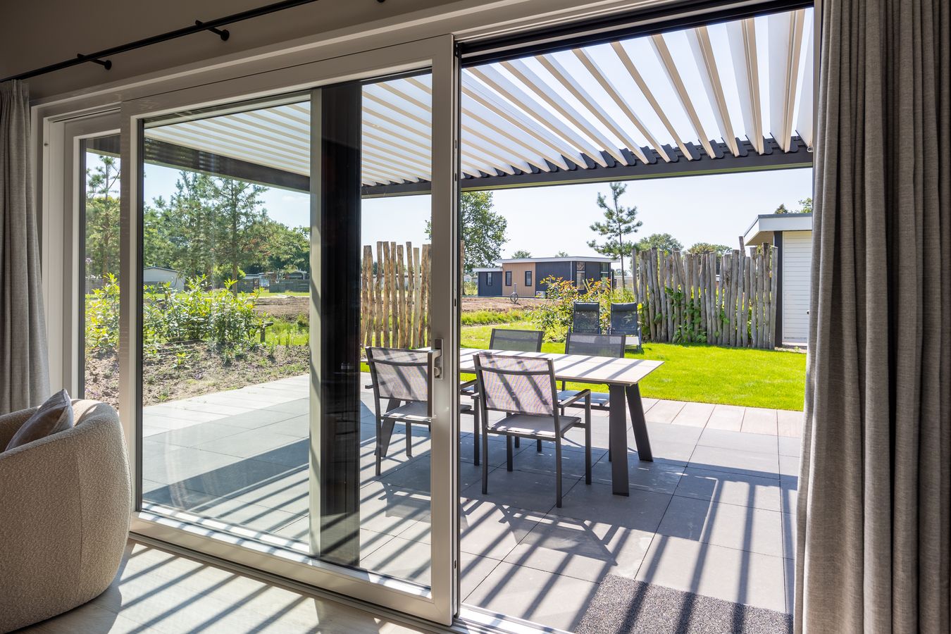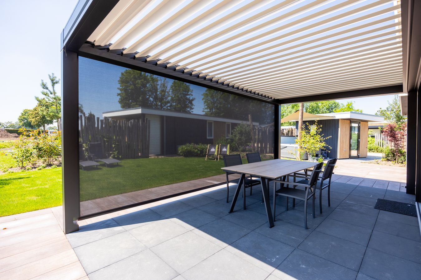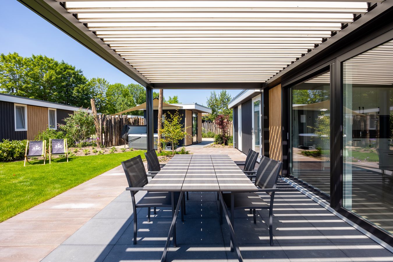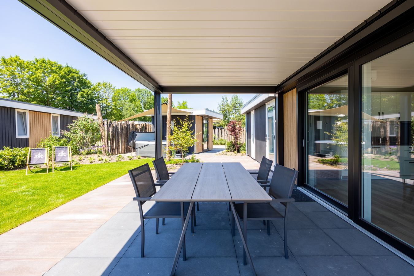 Een prachtige recreatievilla met een lamellenoverkapping. Deze villa staat op ons familiepark in Voorthuizen en is voorzien van het (verplichte!) energielabel A+ of hoger.