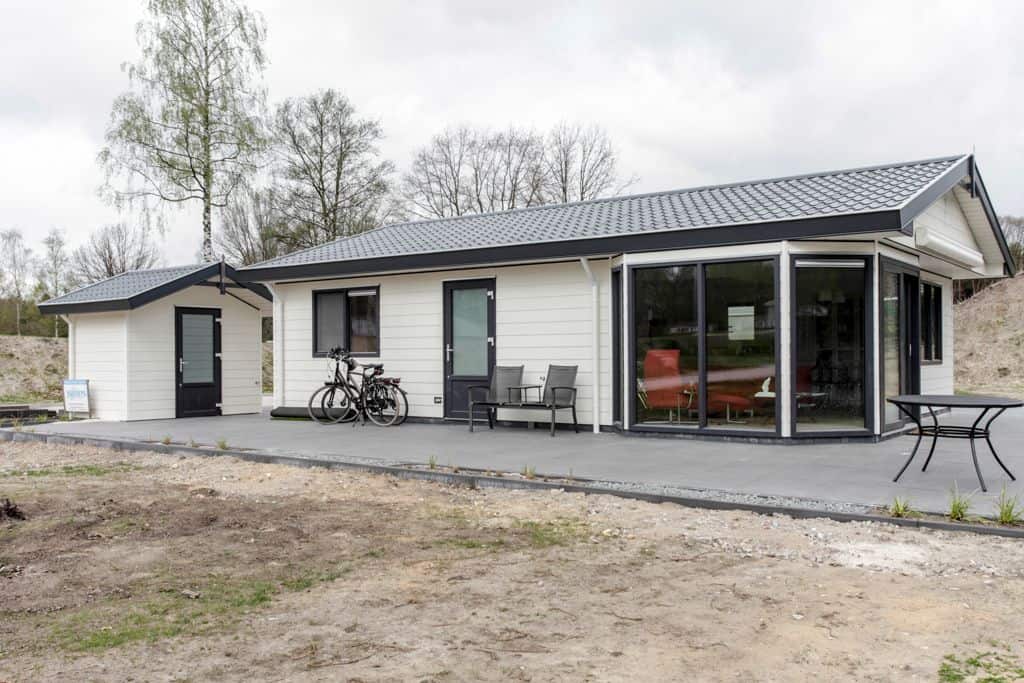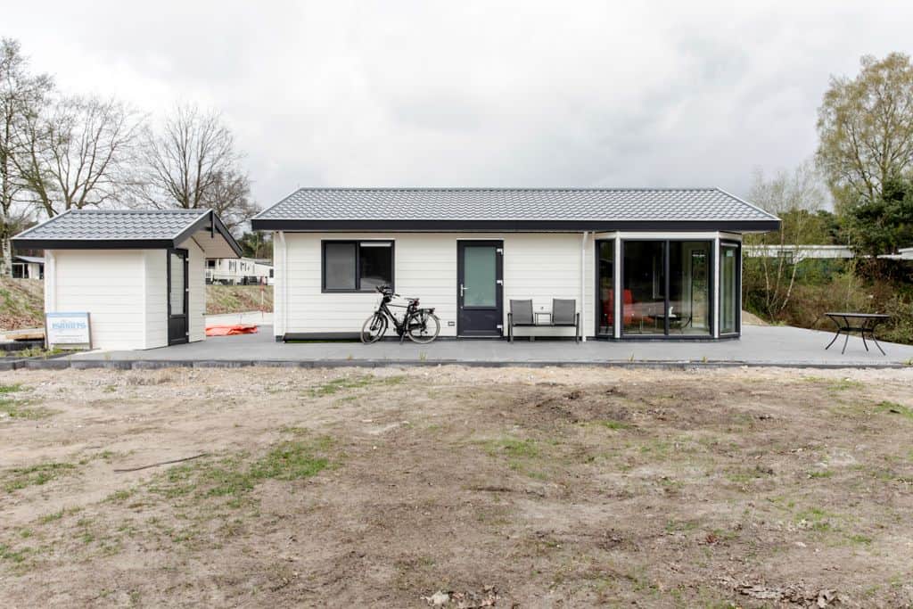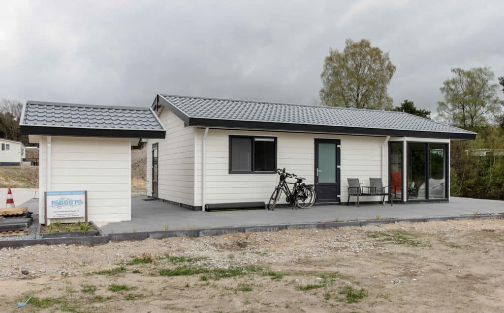 Recreatiewoning geplaatst op Camper Village Arcen. Mét caravan! Bij de reactiewoning (type Manitoba) kunt u natuurlijk ook uw camper stallen. De woning is voorzien van een ruime slaapkamer, een inpandige berging en een ruime badkamer. De U-vormige keuken grenst aan de woonkamer met verhoogd plafond. Ook heeft deze woning een ruime bergzolder, deze is vanuit de inpandige berging toegankelijk middels een vlizotrap.