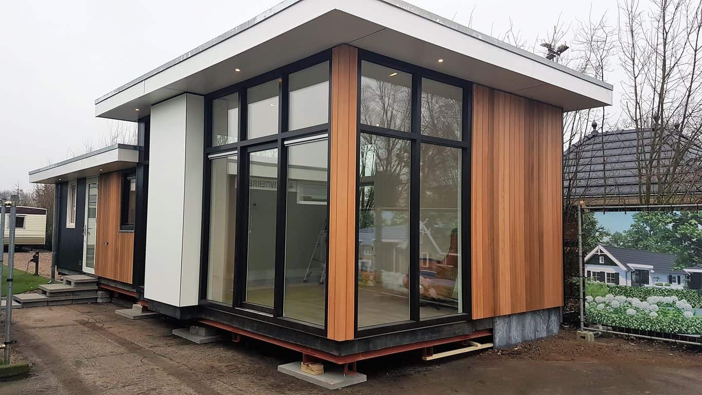 Deze recreatiewoning is uitgevoerd in met een extra hoge woonkamer. Naast het riante, ruimtelijke gevoel is er ook veel extra daglicht, mede door de bovenlichten die rondom doorlopen. De woning behoort tot het model Quadro. Dit model is bij veel van onze klanten favoriet vanwege de moderne uitstraling en de strakke belijning. Uiteraard kan dit type woning geheel naar wens worden uitgebouwd en ingericht.