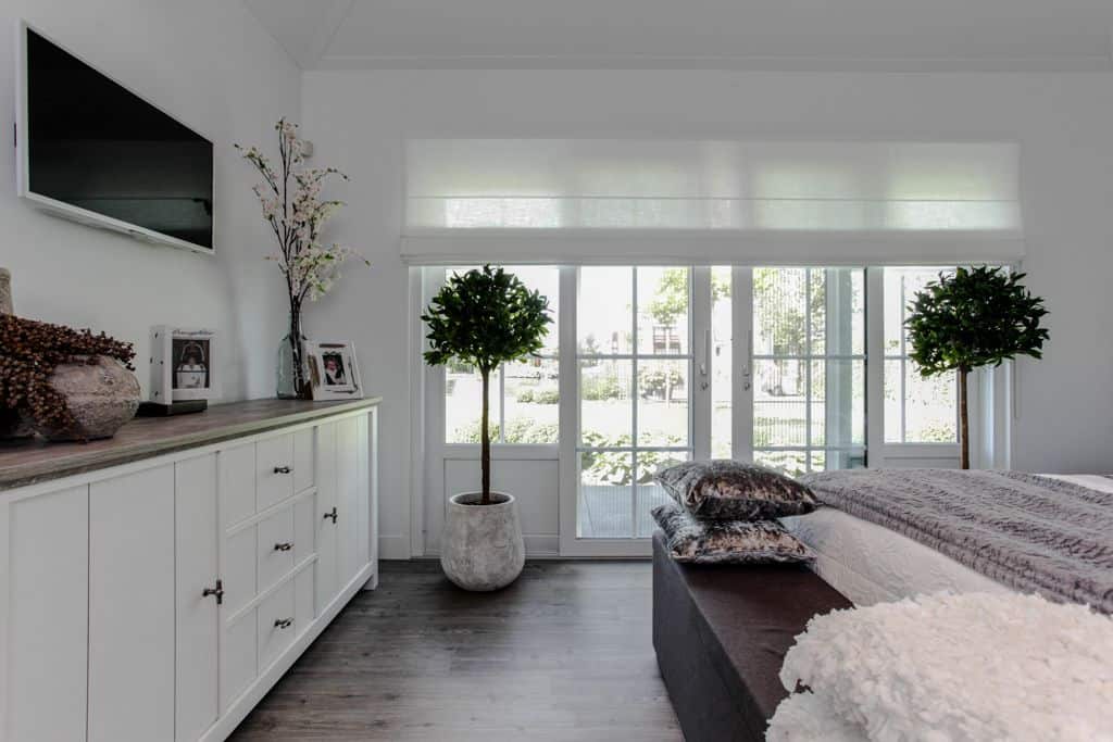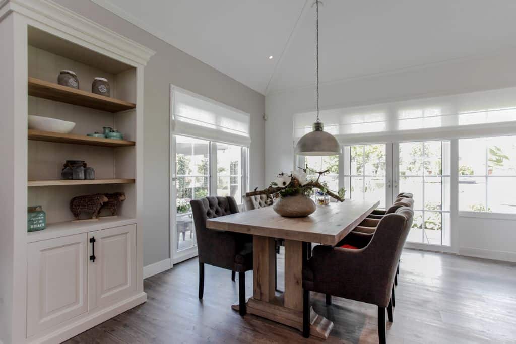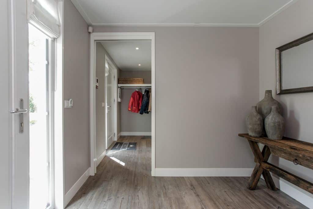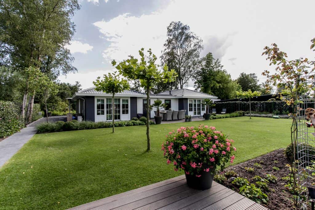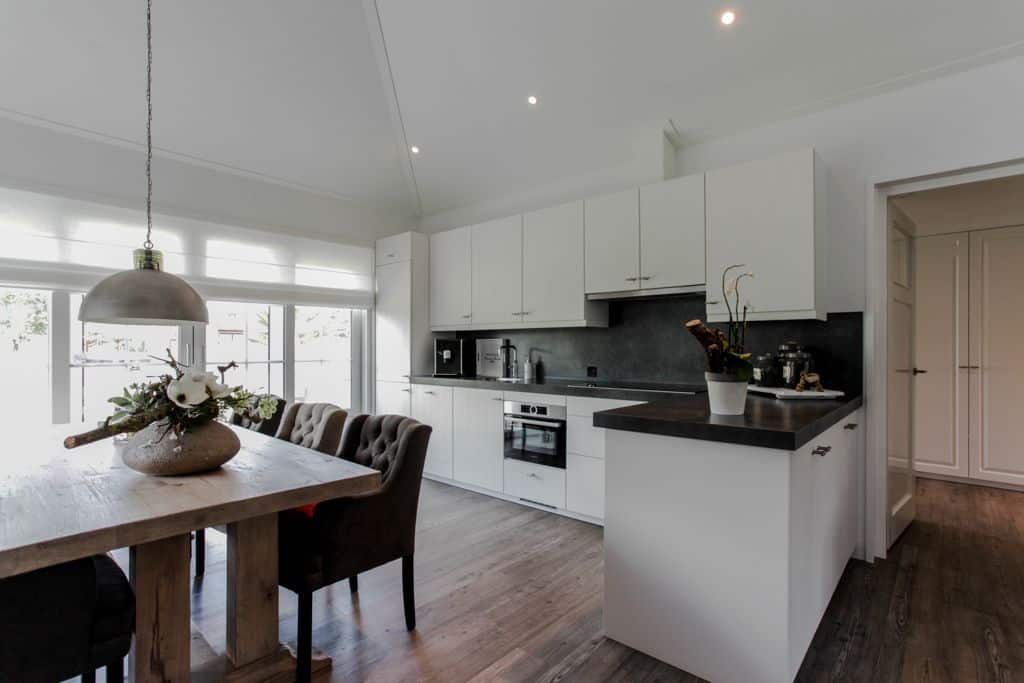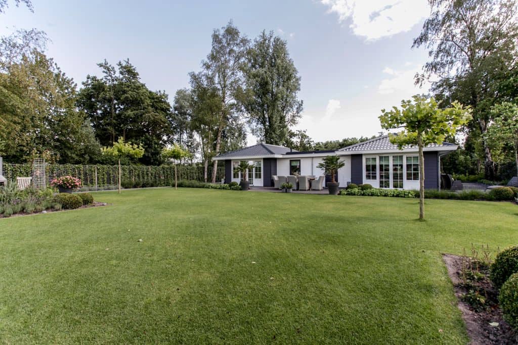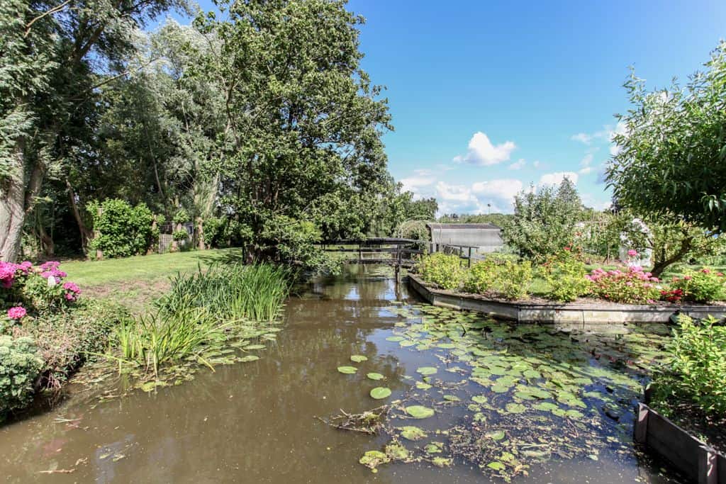 ‘We hadden geluk dat we dit stukje grond konden aanschaffen,’ zegt de klant. ‘Voorheen woonden wij in een prachtig oud gemaal, maar toen onze kinderen de deur uitgingen, was het letterlijk leeg. We hebben de 2000 kub grote, compleet verbouwde woning verkocht en wilden iets kleins terug met minder onderhoud. Via-via kwamen we in contact met TOP Totaal en we waren direct verkocht. Van dit prachtige plekje, gelegen aan de Giessen – een zijtak van de Merwede – wilden we een unieke en gezellige plek maken, met voldoende privacy en ruimte voor onze kleinkinderen. Het liefst in landelijke stijl. En dat is hun zeker gelukt. De landelijke kleuren en inrichting van de woning zijn tot in detail doorgevoerd. De prachtige tuin heeft veel beschutte plekjes en een fijn terras waar je heerlijk kunt zitten.’