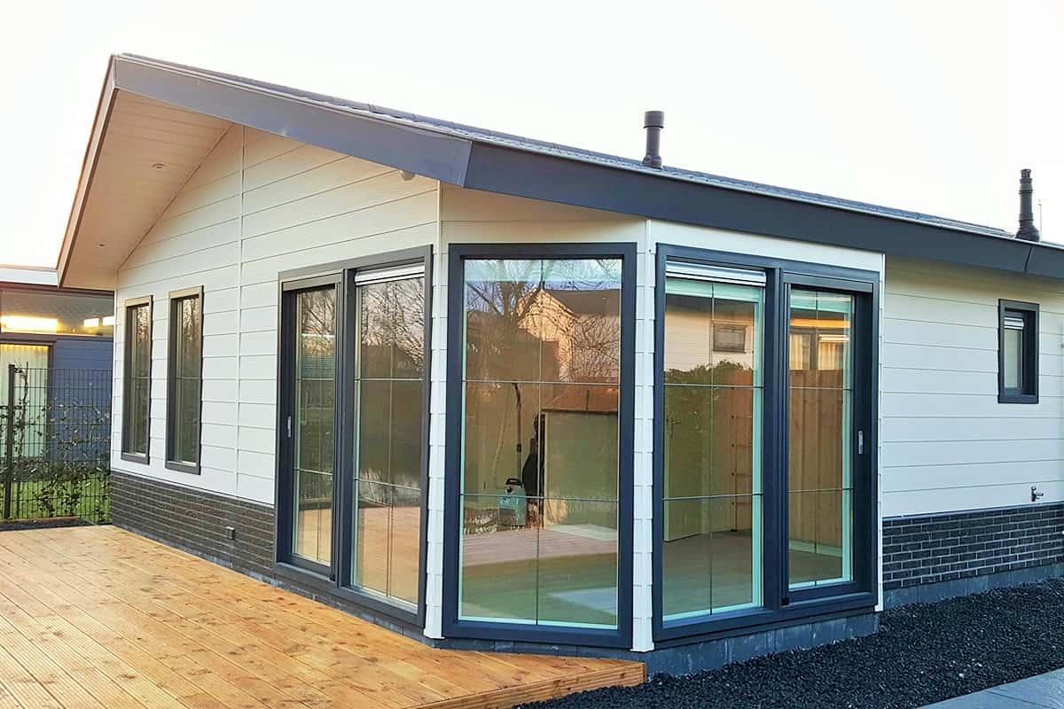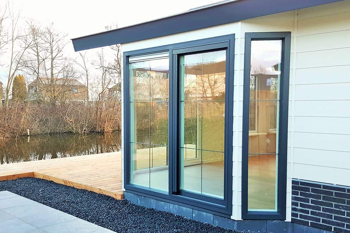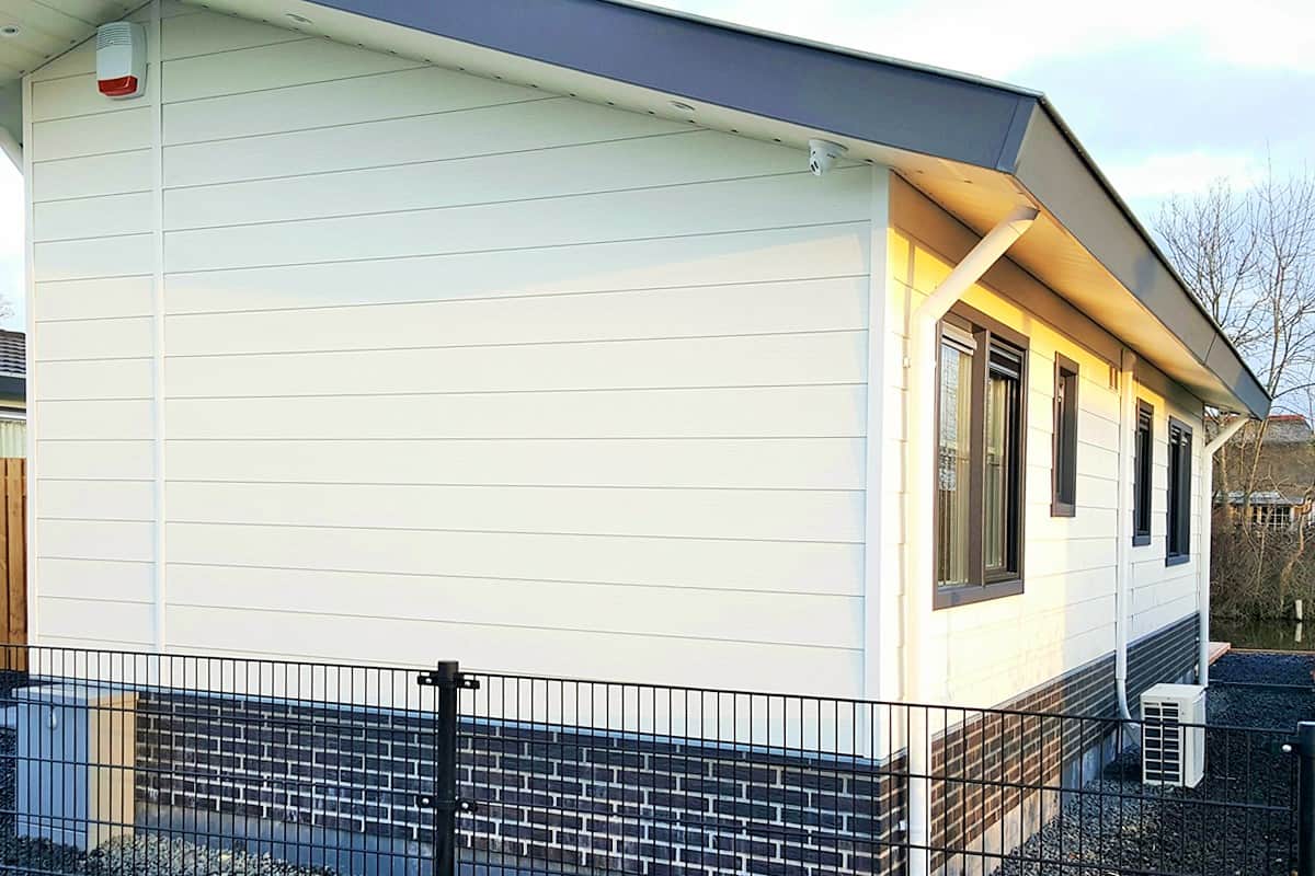 Op Park 22 in Breukelen hebben wij deze recreatiewoning mogen plaatsen. Volledig op maat en naar wens! De recreatiewoning is uitgevoerd met duurzame en onderhoudsarme materialen. Opvallend is de verspringing en de stenen borstwering rondom.