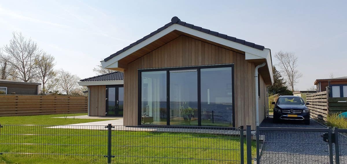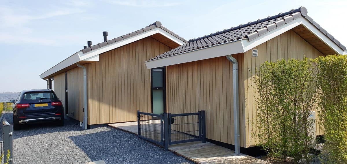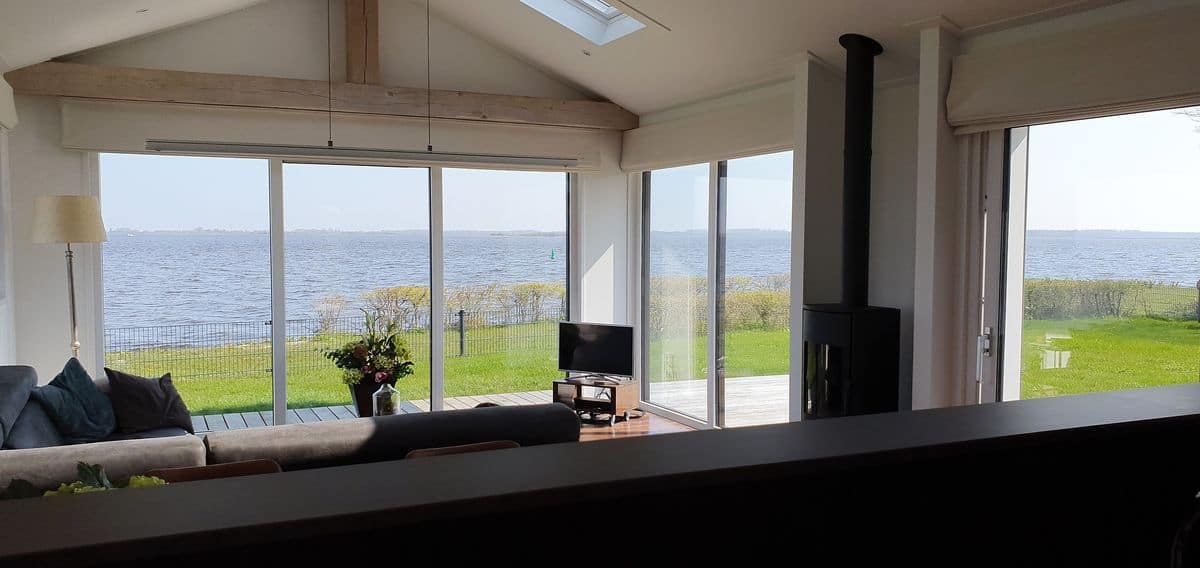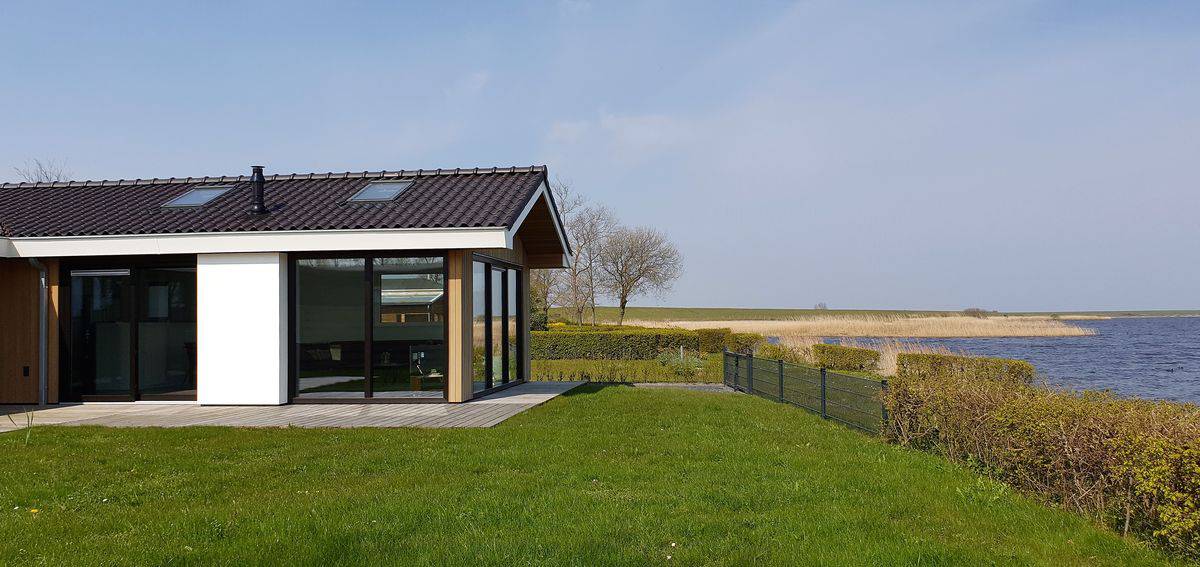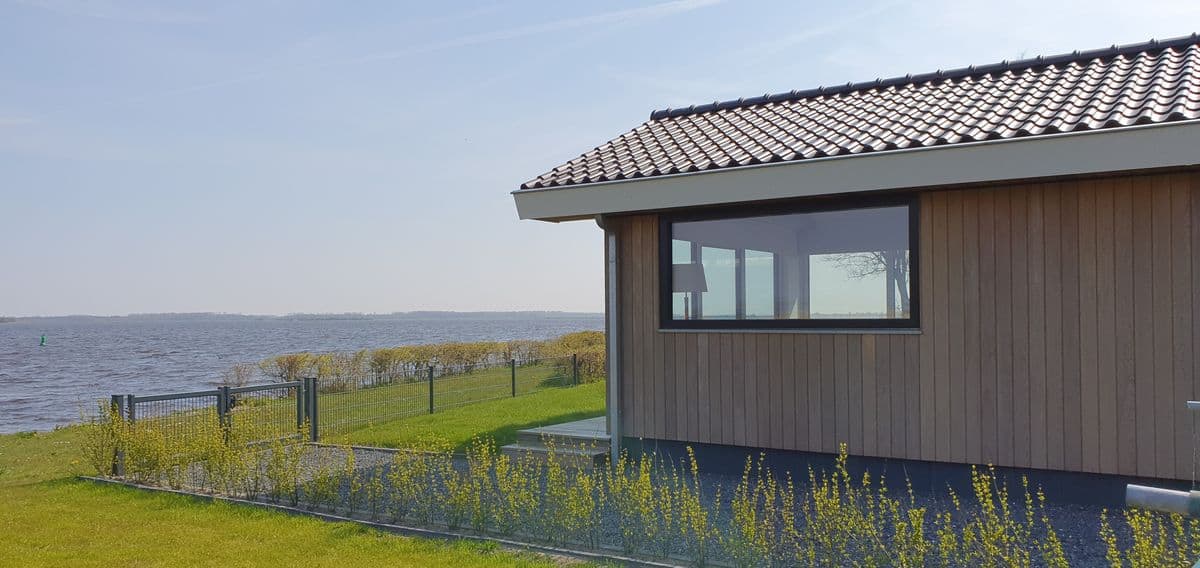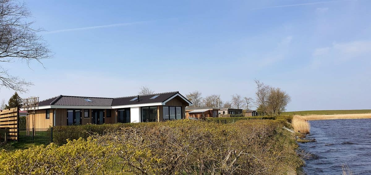 Pal aan het Lauwersmeer (Anjum, Friesland) staat deze unieke recreatiewoning. De onderhoudsarme woning, gebouwd in een L-vorm, is uitgevoerd met een riante dak-/kapconstructie voor nog meer ruimtebeleving. Dit wordt binnen versterkt door het verhoogde plafond en de Velux dakramen. Daarnaast zorgt dit ook voor extra bergruimte t.p.v. bergzolder.