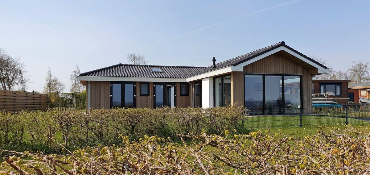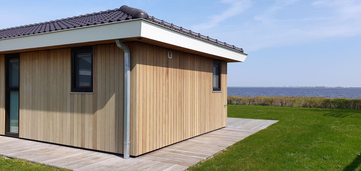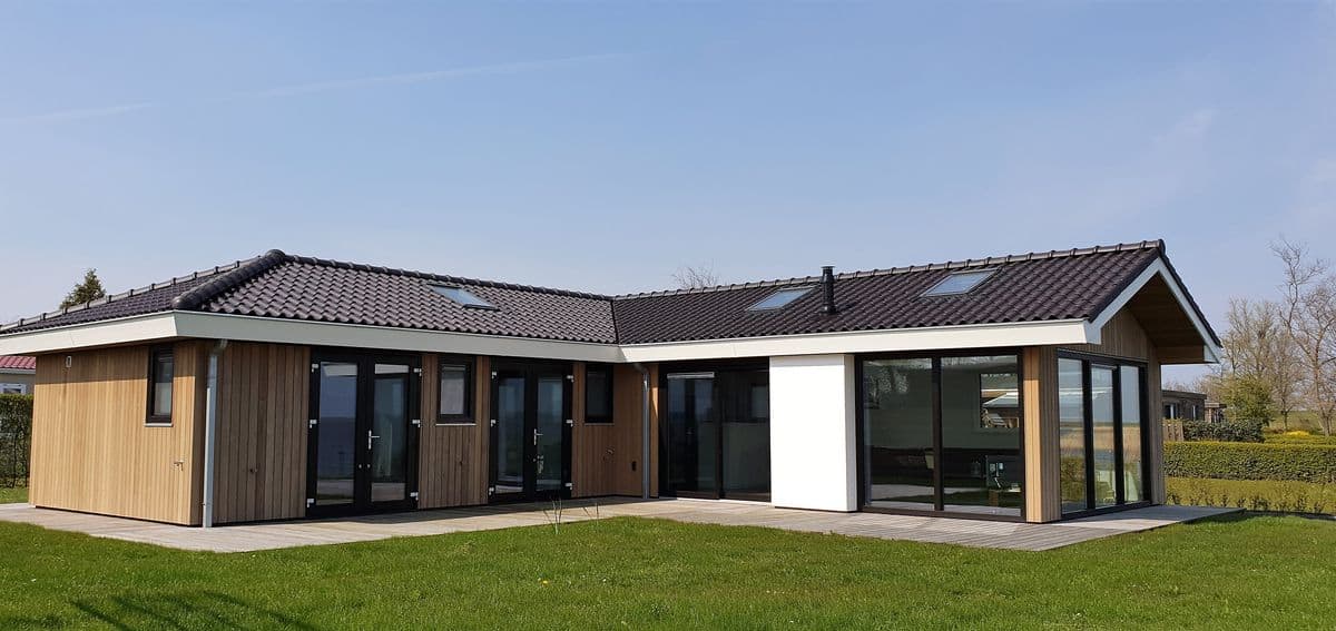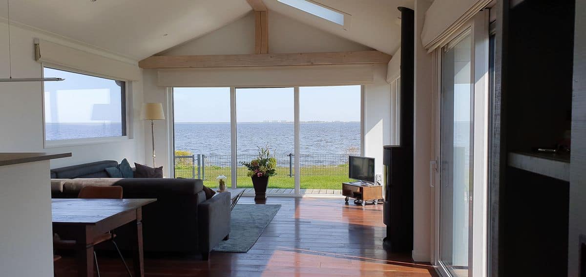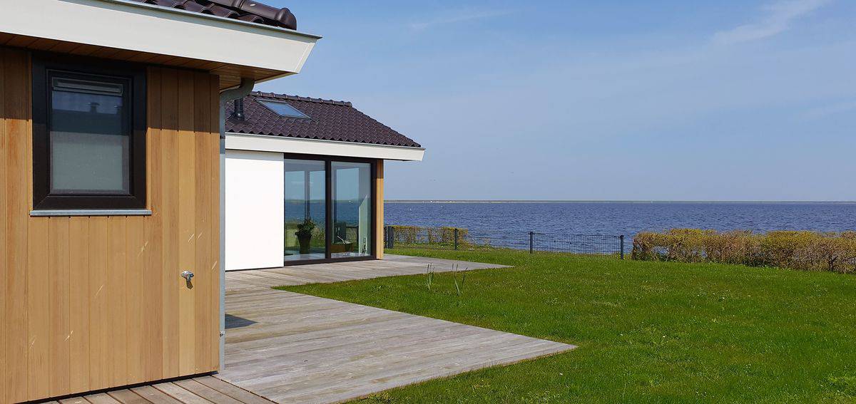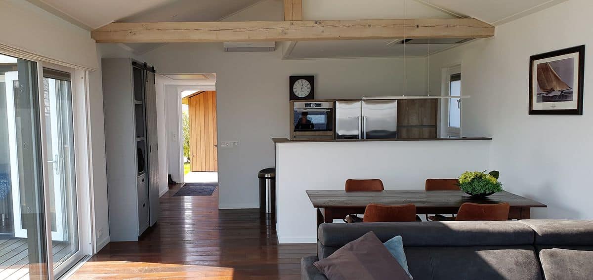 Pal aan het Lauwersmeer (Anjum, Friesland) staat deze unieke recreatiewoning. De onderhoudsarme woning, gebouwd in een L-vorm, is uitgevoerd met een riante dak-/kapconstructie voor nog meer ruimtebeleving. Dit wordt binnen versterkt door het verhoogde plafond en de Velux dakramen. Daarnaast zorgt dit ook voor extra bergruimte t.p.v. bergzolder.