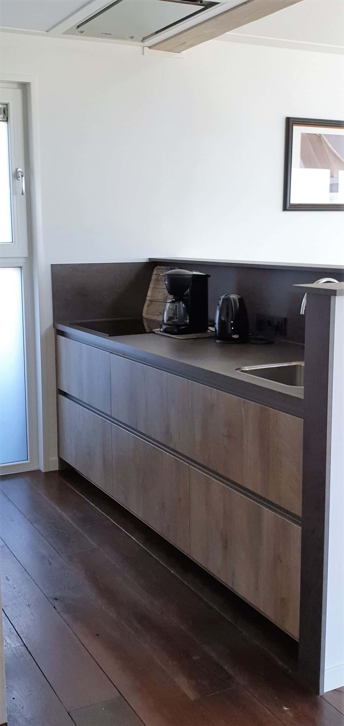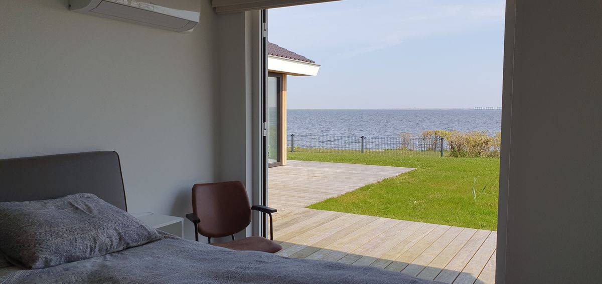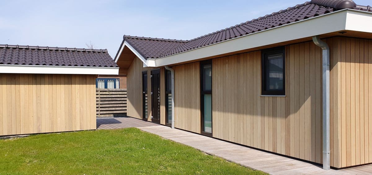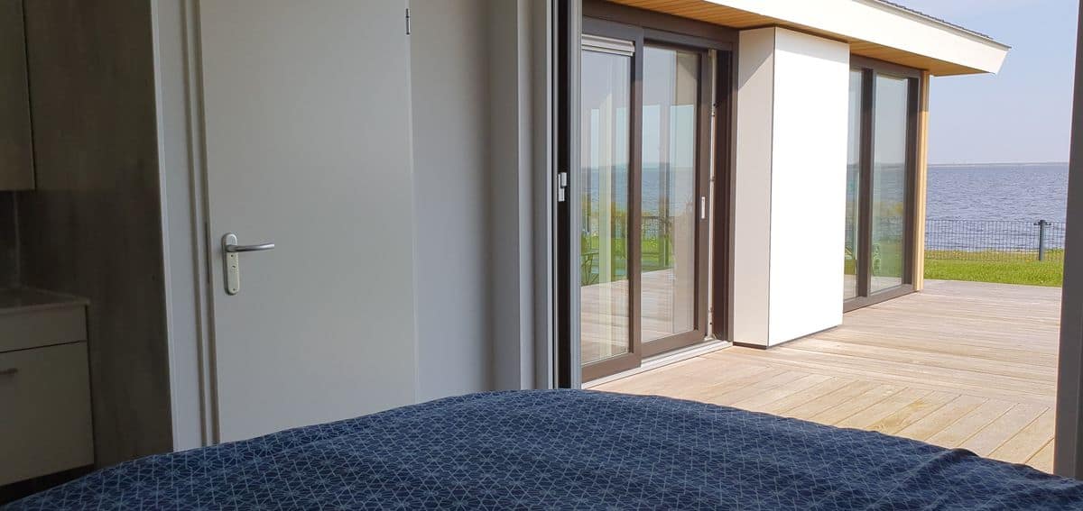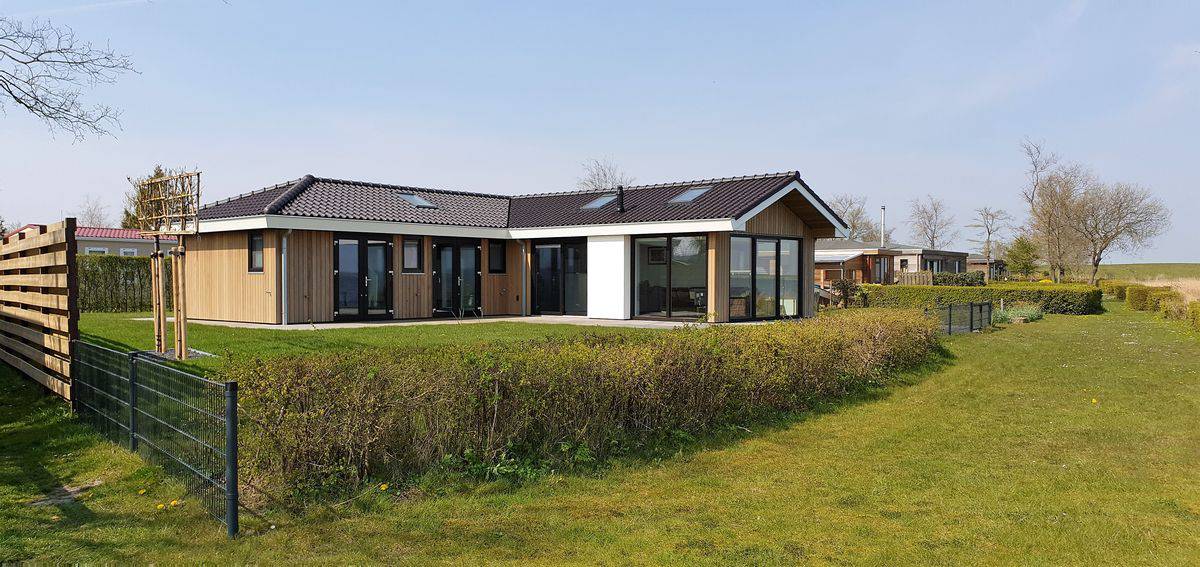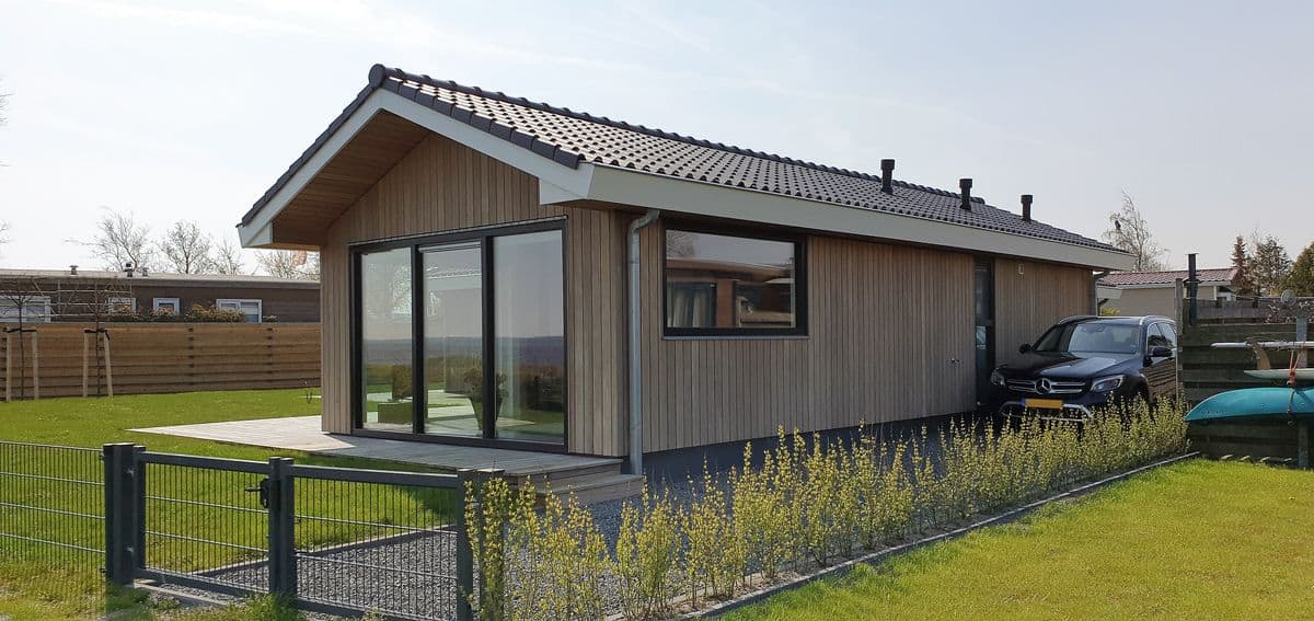 Pal aan het Lauwersmeer (Anjum, Friesland) staat deze unieke recreatiewoning. De onderhoudsarme woning, gebouwd in een L-vorm, is uitgevoerd met een riante dak-/kapconstructie voor nog meer ruimtebeleving. Dit wordt binnen versterkt door het verhoogde plafond en de Velux dakramen. Daarnaast zorgt dit ook voor extra bergruimte t.p.v. bergzolder.