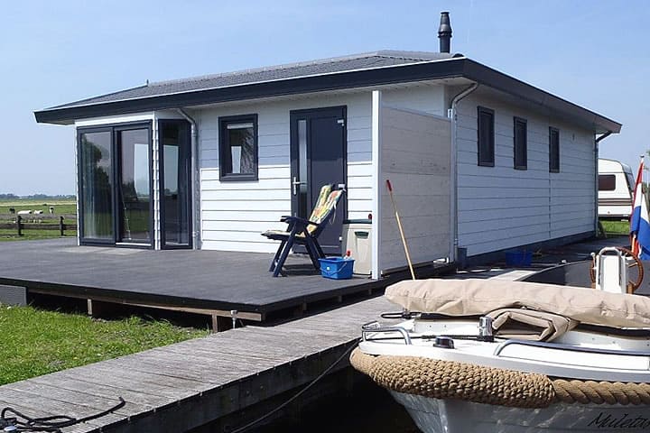 Aan de ene kant het weiland, aan de andere kant het water; landelijker dan dit wordt het niet. In het mooie Zuid-Hollandse Rijpwetering staat deze TOP recreatiewoning, type Alberta. Het recreatiechalet heeft een L-vorm en is voorzien van een puntdak op beide delen. Al onze zijn chalets standaard uitgevoerd met comfortabele voorzieningen, zoals centrale verwarming, HR++-glas, inbouwapparatuur en luxe sanitair.