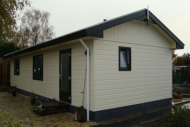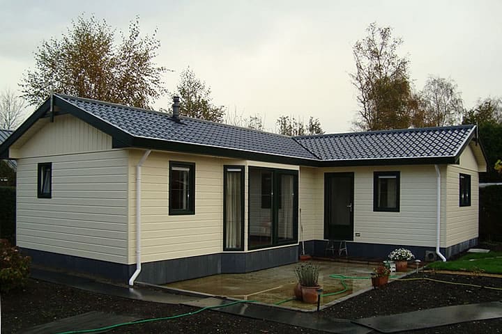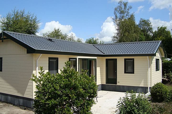 Chalettype Alberta is gebouwd in een L-vorm. Dat geeft de woning iets speels en creëert tegelijkertijd een beschutte hoek. Ideaal voor een terras met veel privacy! De erker geeft nét dat beetje extra ruimte en licht waardoor het chalet een nog fijnere vakantieplek wordt.