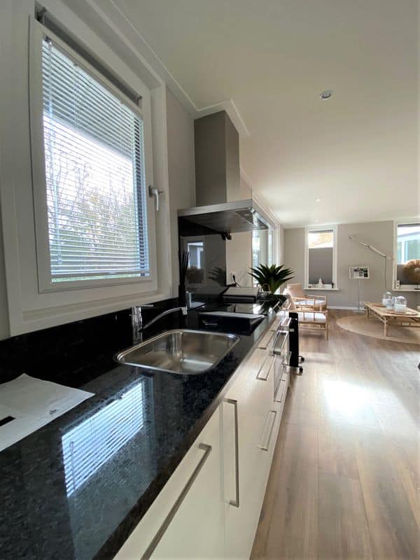 Een onderhoudsarme woning, modern uitgevoerd (type Quadro). Uitermate geschikt als mantelzorgwoning, maar ook zeker als recreatiewoning.