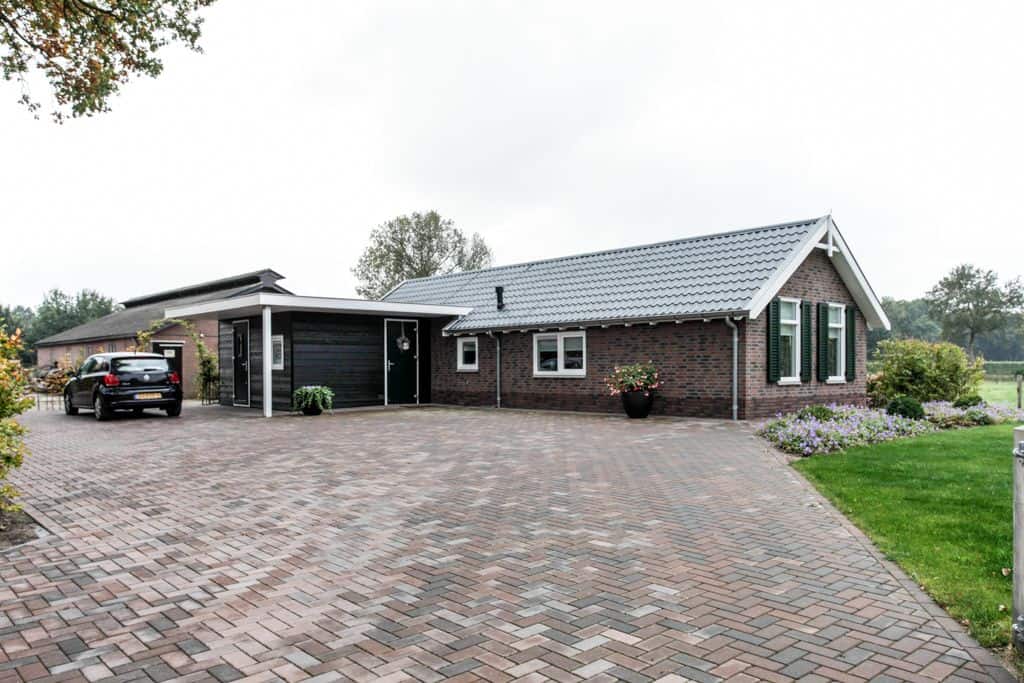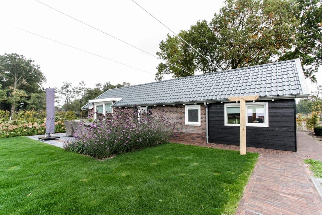 Een mantelzorgwoning uitgevoerd in een donkere steen. Uiteraard behoren andere kleuren ook tot de mogelijkheid. Deze kleurstelling komt erg goed tot zijn recht in het buitengebied.