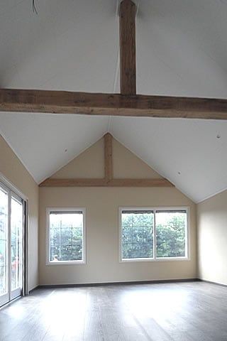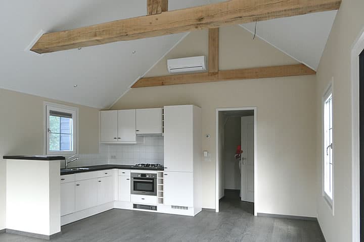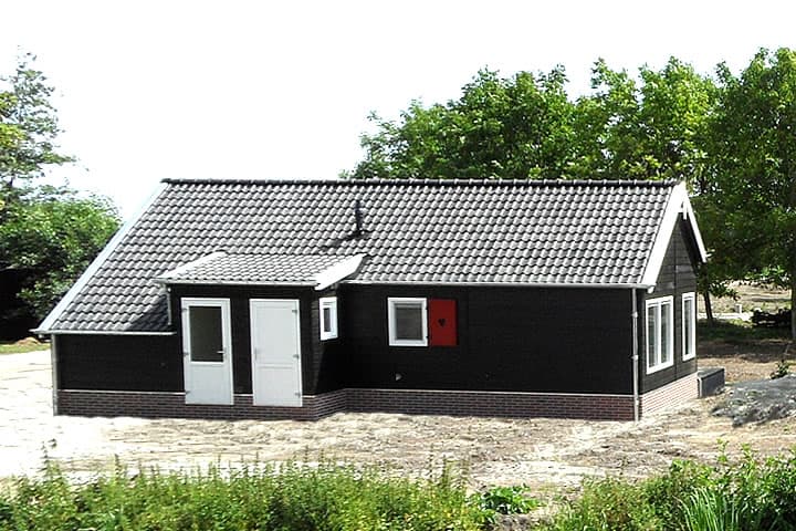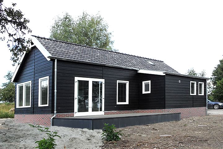 Wat valt u op aan deze recreatiewoning? Juist, de asymmetrische lijnen! Toch is deze woning gebaseerd op een vrij recht-toe-recht-aan model: Manitoba heeft van zichzelf een carrévorm. De afwijkende stijl is het gevolg van de aanbouw, die aan een kant is doorgetrokken tot aan de gevel. Dat geeft een bijzonder speels en ruimtelijk effect. Het verhoogde plafond benadrukt de grote ruimte.