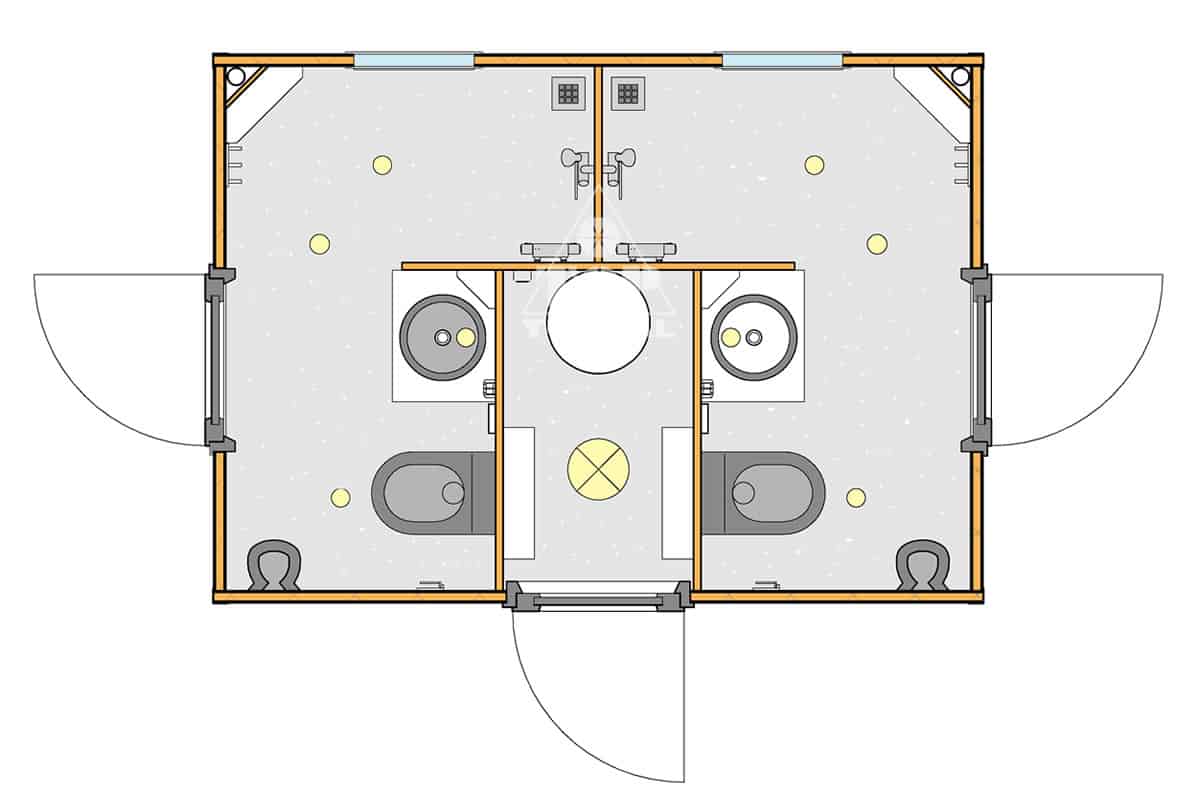 Een dubbele sanitair unit met zowel een toilet- als een doucheruimte + een eigen technische ruimte.