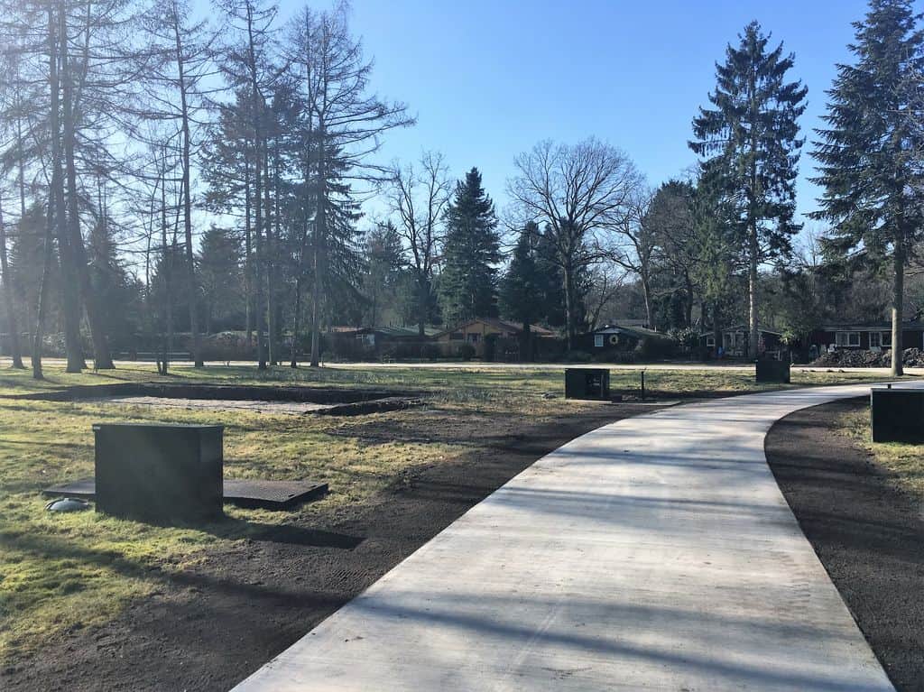 De infra voor de uitbreiding voor de 18 bungalows is gereed. De bungalows kunnen een maximaal vloeroppervlak hebben tot maar liefst 70m2. En een berging van 7m2. Het strakke moderne ontwerp van de Vuursche bungalows valt op door zijn grote glazen puien die zorgen voor een optimale natuurlijke lichttoelating. Door de L-vorm ontstaat tussen de woonvleugels een beschut terras met hardhouten luifel.