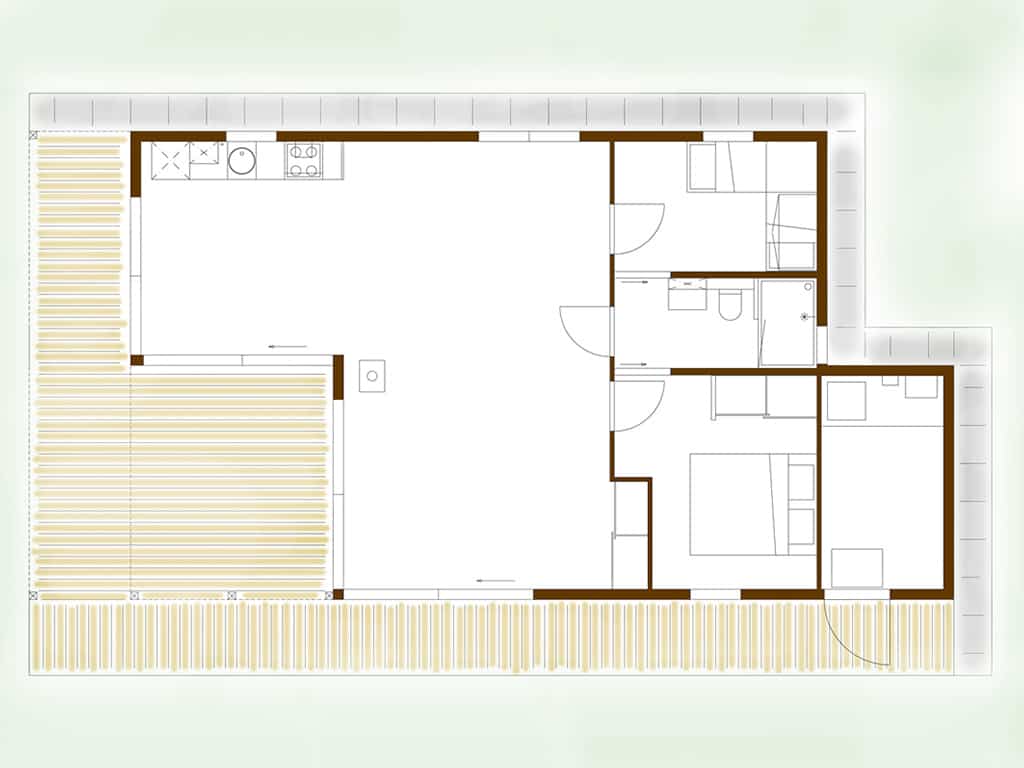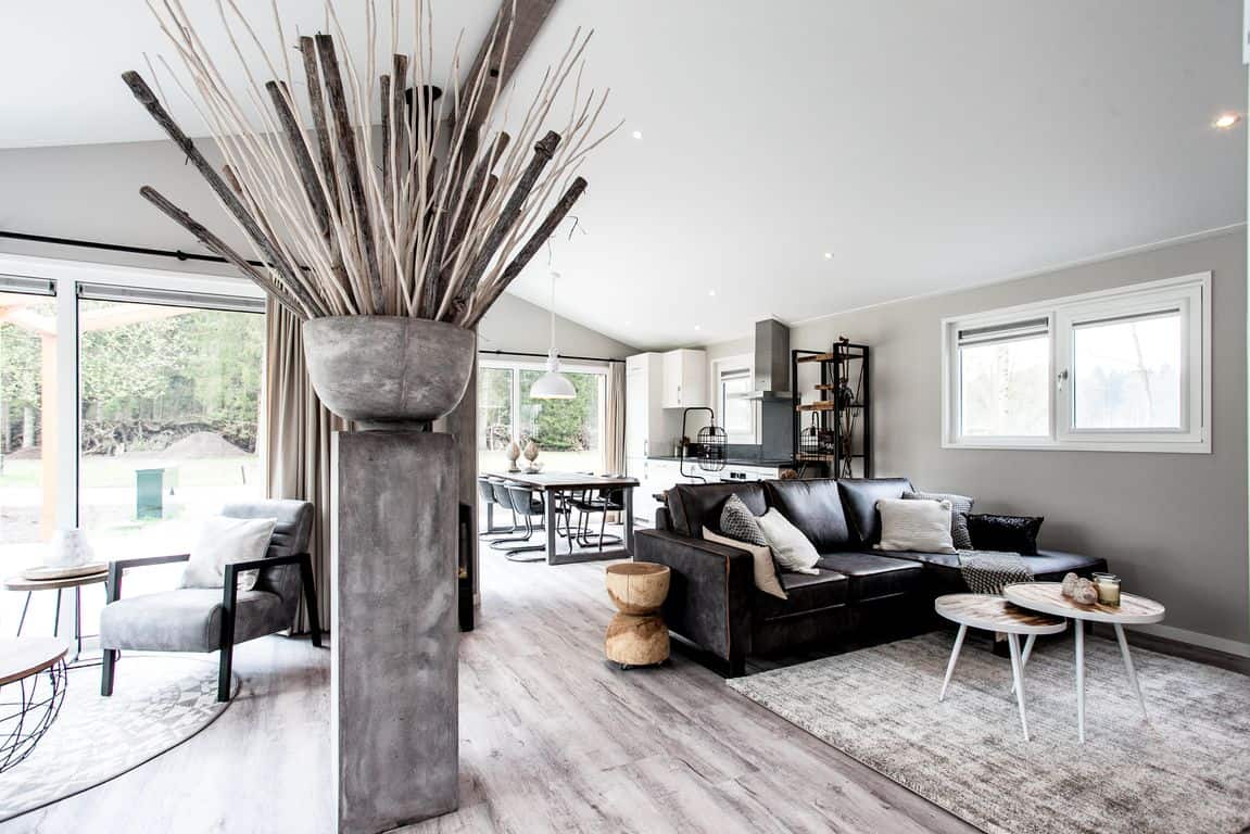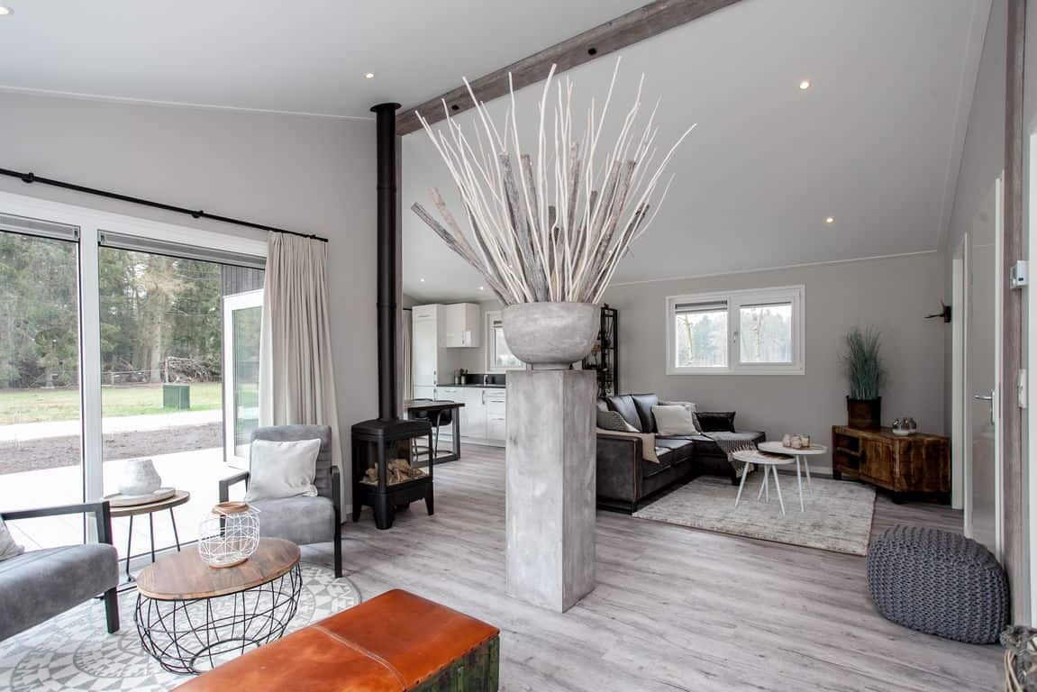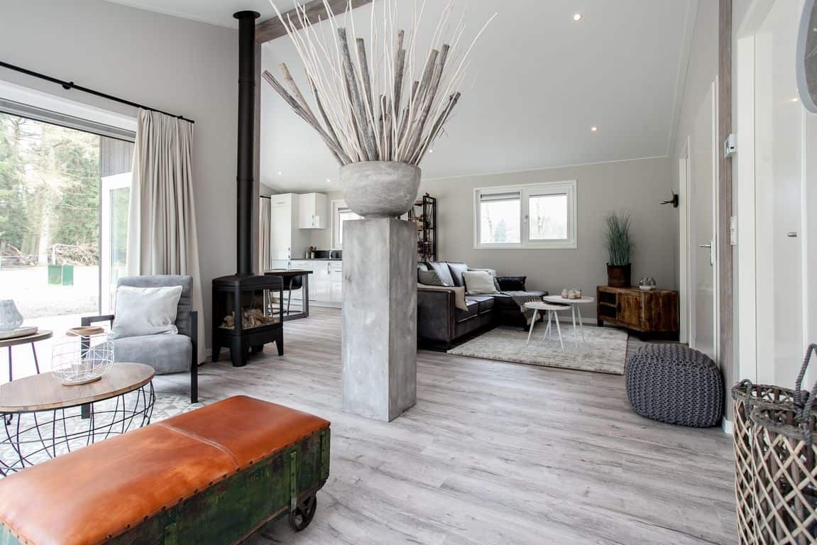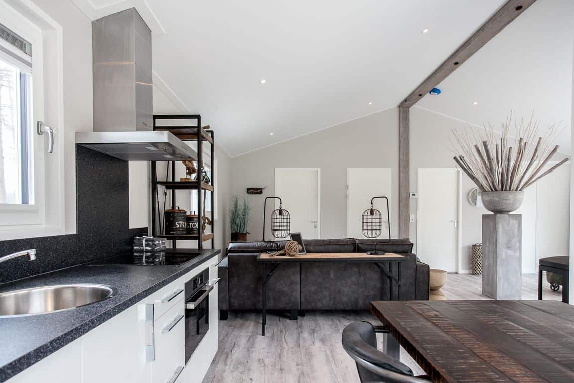 De bungalows zijn optimaal geïsoleerd en voorzien van een zwarte verticale gevelbekleding van composietdelen met houtstructuur en een zinken roofdak. Materialen die een minimaal onderhoud vragen. Het interieur is geheel naar eigen wens en smaak in te richten. De omgeving krijgt de uitstraling van een ruig en open landschap met houtwallen, heggen en struweel.
