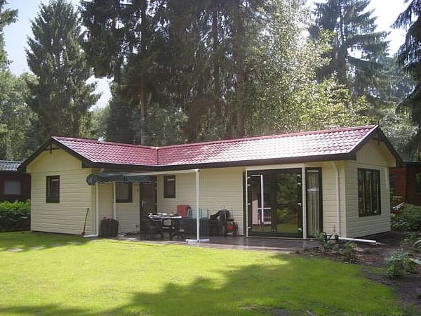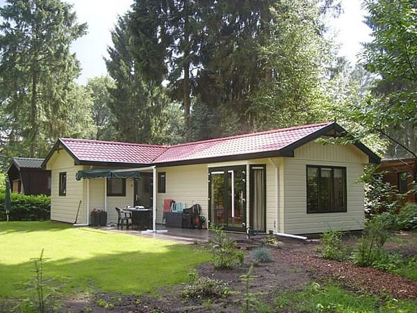Even een paar dagen ontspannen en weg van de drukte. In dit lieve boshuisje gaat dat natuurlijk prima lukken, want het chalet is voorzien van alle gemakken en ligt ook nog eens op een prachtige plek. De recreatiewoning is uitgevoerd in een romantische stijl met witte buitenwanden en dakpannen in terracottakleur. Welke kleurencombinatie zou u kiezen voor uw eigen chalet?