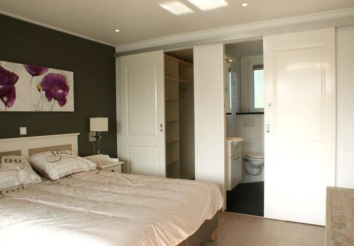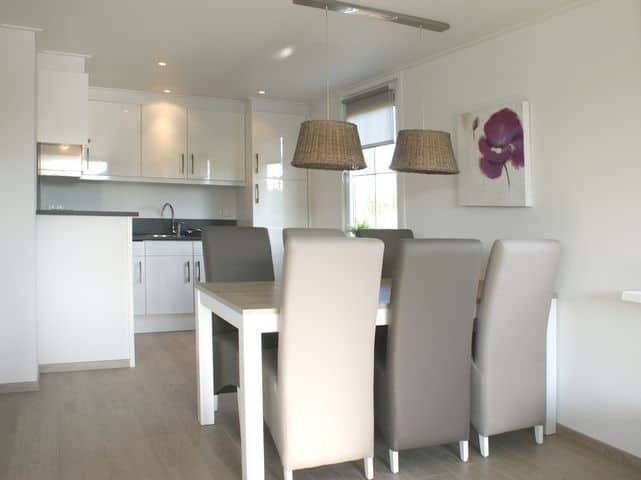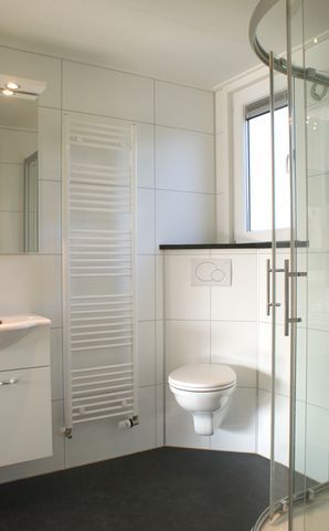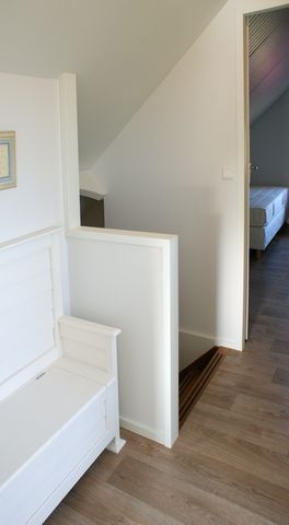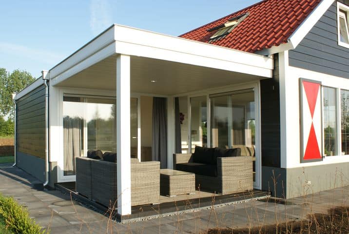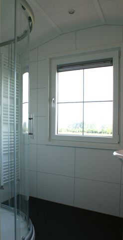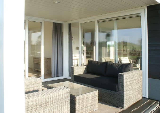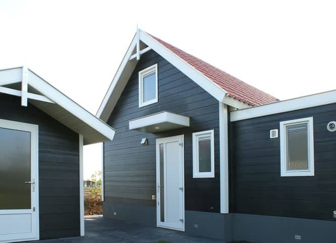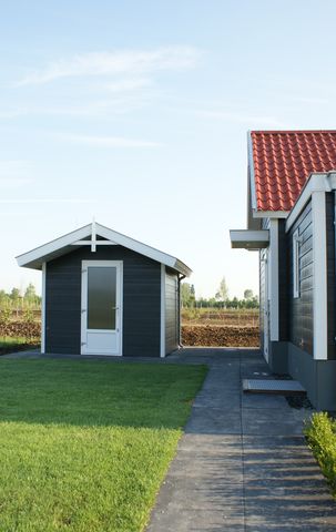 Dit is nog eens een vakantiehuis! Dit chalet, in basistype Manitoba, mochten we uitbreiden met een flinke aanbouw. Daardoor ontstond er extra leefruimte en een prachtig overdekt terras. Een vaste trap leidt naar de royale etage met de slaapkamers en een luxe badkamer. De aparte berging is uitgevoerd in dezelfde stijl als het chalet.