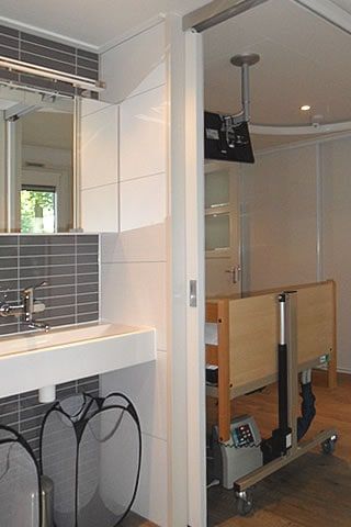 Vakantiechalets voor mensen met een lichamelijke beperking, die realiseren we ook. Juist omdat de vertrekken helemaal naar wens kunnen worden ingedeeld, zijn onze chalets voor deze doelgroep ideaal. Deze mantelzorgwoning is bijvoorbeeld voorzien van een aangepaste badkamer. De slaapkamers zijn ruim genoeg voor een ziekenhuisbed. Of dat niet ongezellig is? Absoluut niet; deze woning bewijst maar weer dat een zorgchalet heel sfeervol kan zijn!