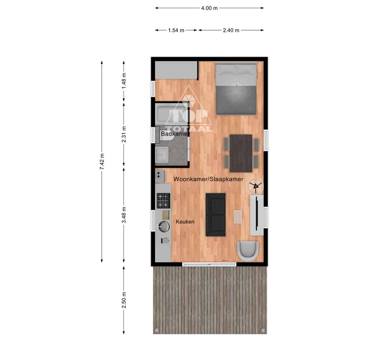 TOP introduceert een nieuw concept! Een trekkershut met de modelnaam 'Alaska'. Dit unieke model is bescheiden qua formaat, maar toch voorzien van alle basisvoorzieningen om optimaal te kunnen recreëren. Bijvoorbeeld ideaal voor:- Locaties waar beperkte ruimte is voor bebouwing