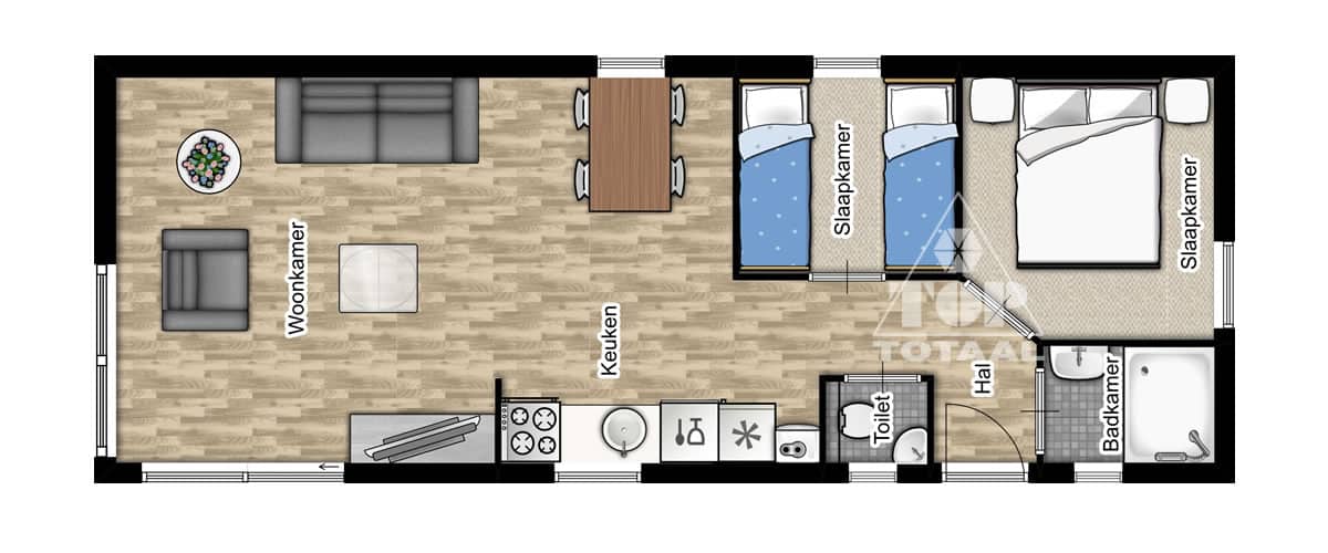 Model TOP Montana is een beauty, en ook nog eens aantrekkelijk laag geprijsd. Deze woning kent een hoog afwerkingsniveau en is, zeker voor instappers, zeer betaalbaar zonder in te leveren aan kwaliteit. In de basisuitvoering is TOP Montana al zeer compleet. Wilt u daar extra luxe aan toevoegen, dan kan dat. Ook extra energiebesparende maatregelen zijn mogelijk. TOP Montana is een uitstekende basis voor iedere recreatiewoning.- 40 m2 woning vanaf € 60.350,-