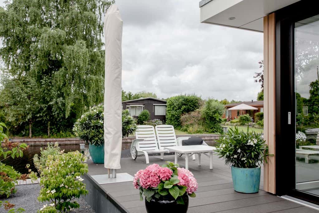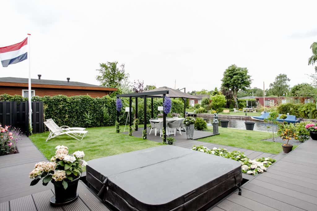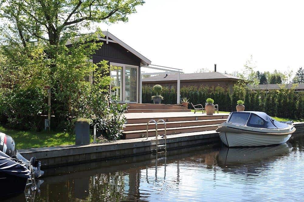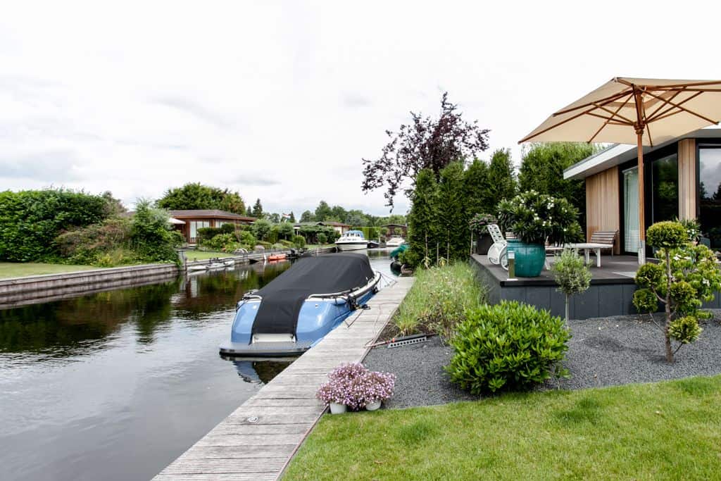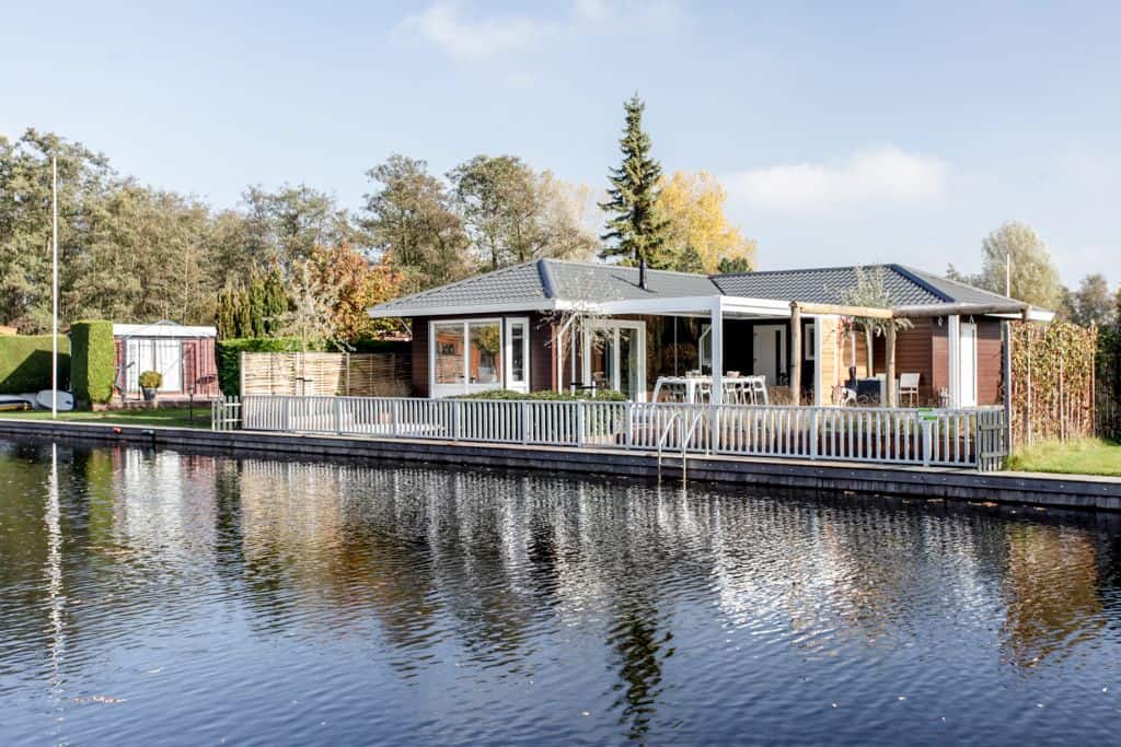 Caravanpark Van de Wetering in Loosdrecht is om vele redenen een bijzonder park. Zo zijn de percelen uitzonderlijk groot. Ruimte genoeg dus voor een super-de-luxe TOP-recreatiewoning.