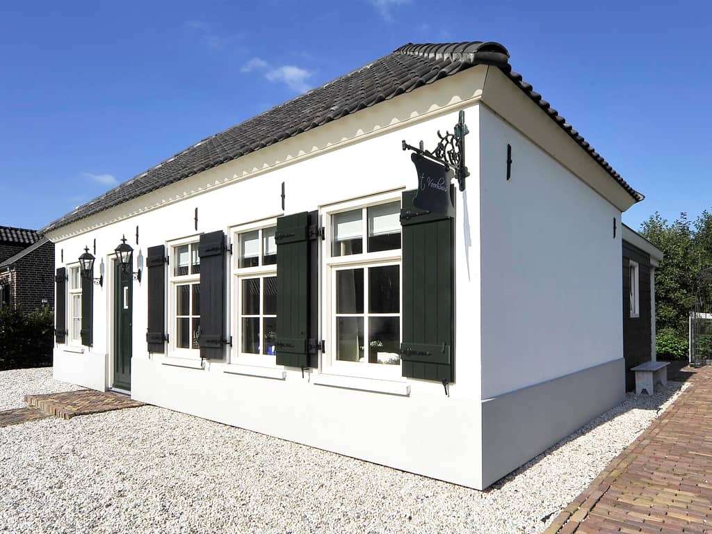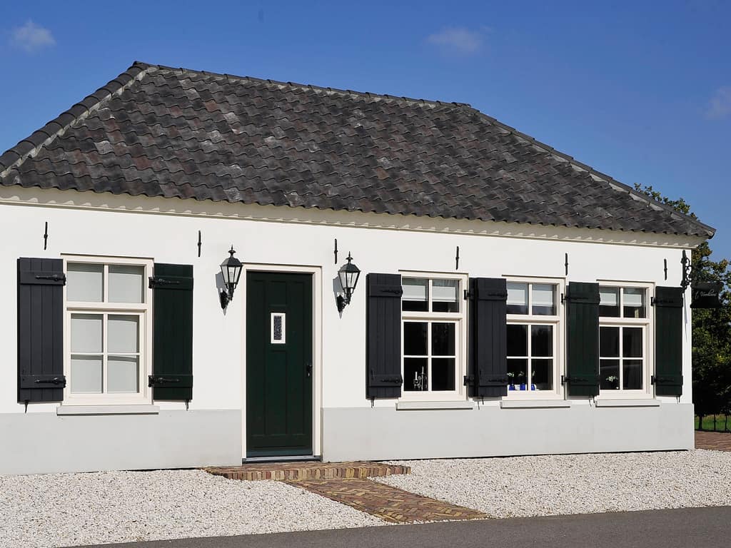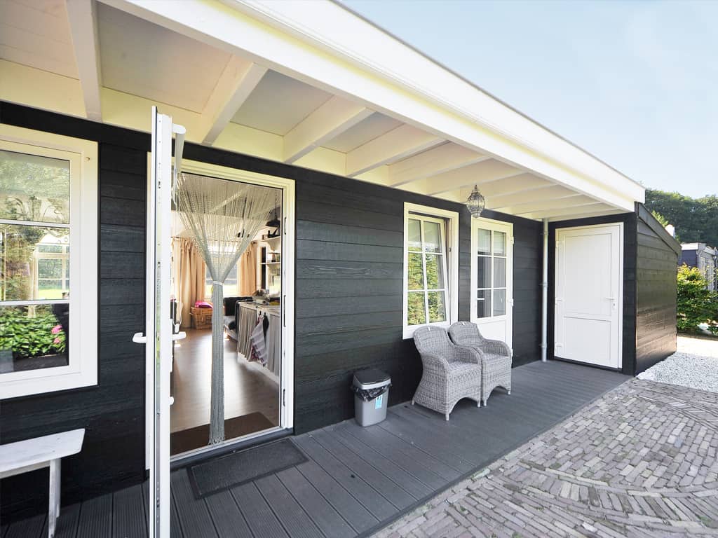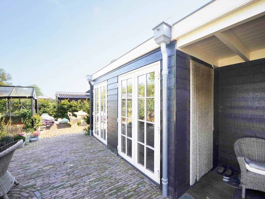 Het Theehuis is duurzaam en energiezuinig gebouwd. De gevels zijn afgewerkt met keramische steenstrips met echte voegen. Op het dak liggen echte dakpannen. De grote aanbouw is voorzien van zwarte kunststof potdekselpanelen met houtnerf. Verder heeft het Theehuis zinken dakgoten en regenpijpen en bestaat het overdekte terras uit onderhoudsarme vlonderdelen. Geheel in stijl zijn de kozijnen verdiept in de gevel aangebracht. En de raamluiken? Die kunnen echt open en dicht. Wat een plaatje!