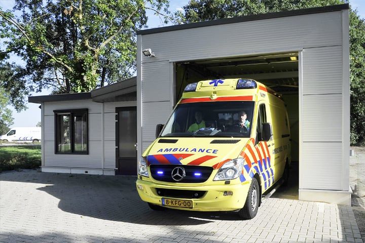 Ambulanceposten bouwen wij ook. Bij deze locaties is het belangrijk dat een ambulance binnen 15 minuten na de melding aanwezig kan zijn. De ambulancedienst zocht daarom naar een gebouw dat altijd aanpasbaar en mogelijk zelfs verplaatsbaar is. De oplossing: TOP Totaal.